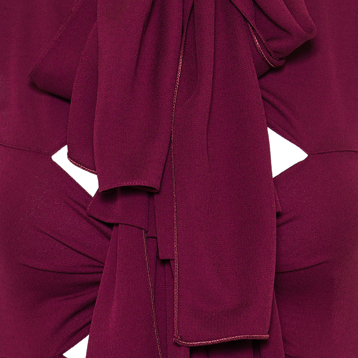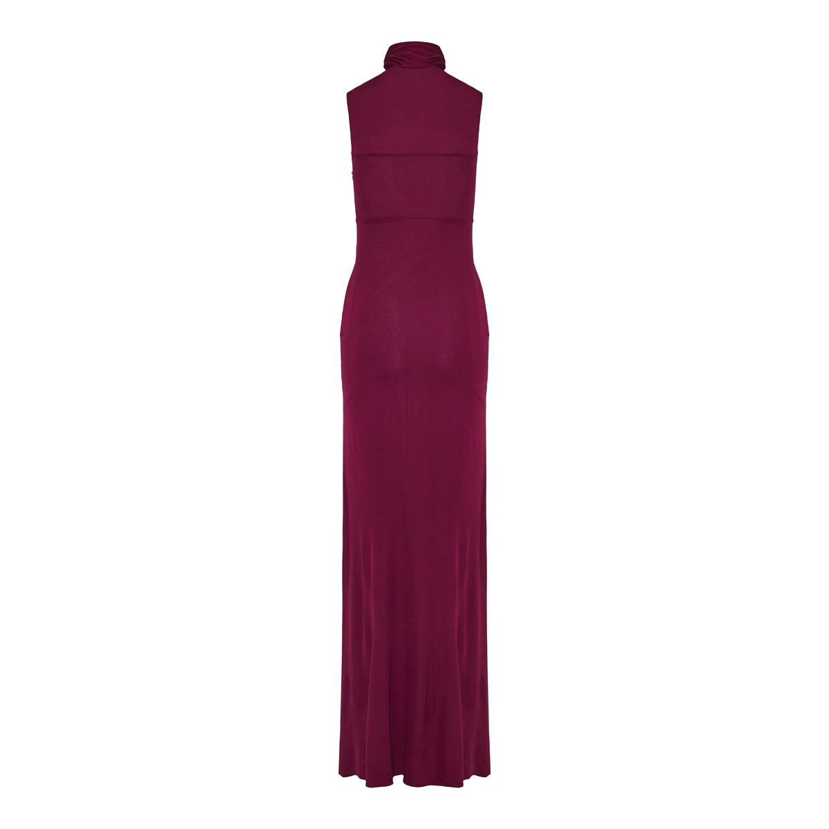 This jersey gown by Alaïa features a sculptural halterneck silhouette with an elegant bow detail at the neck. Crafted from stretch-viscose fabric, it hugs the body while allowing movement. With its refined simplicity, it suits both red-carpet events and formal evening wear, embodying couture ease with timeless poise.