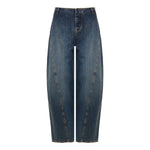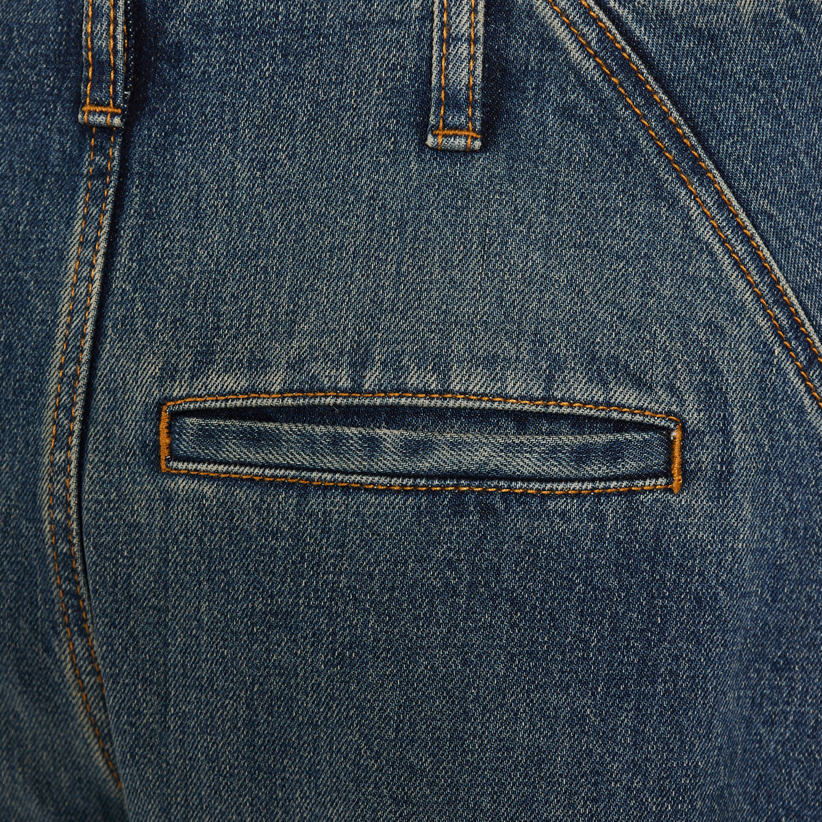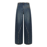 These wide-leg jeans are crafted from medium-stiff 100% cotton denim, designed without stretch to maintain structure. Cut high-waisted with a loose thigh and full leg silhouette, styling remains sharp with pressed creases and classic 5-pocket detailing. Suited for elevated casual wear or refined denim looks.