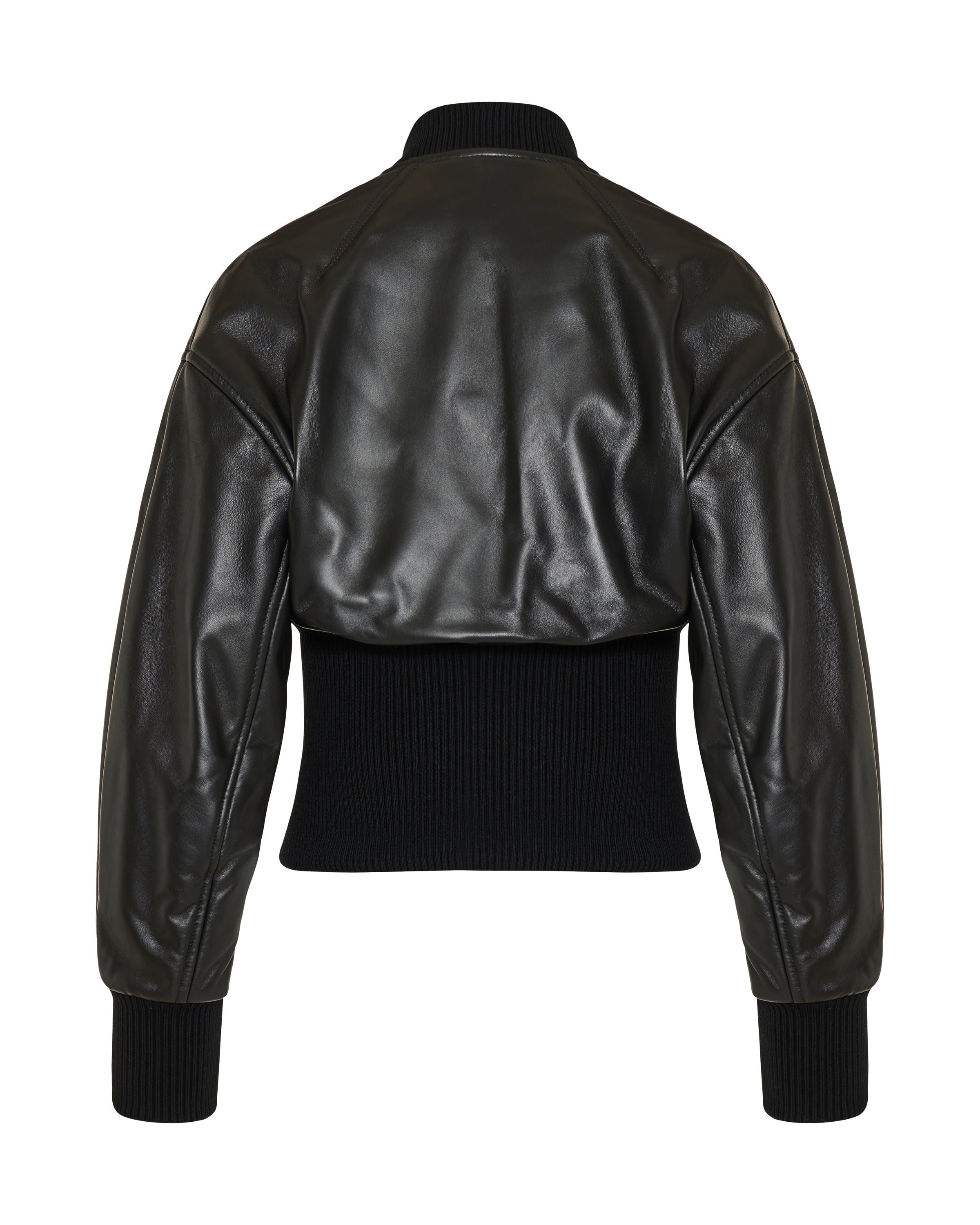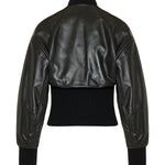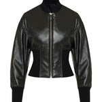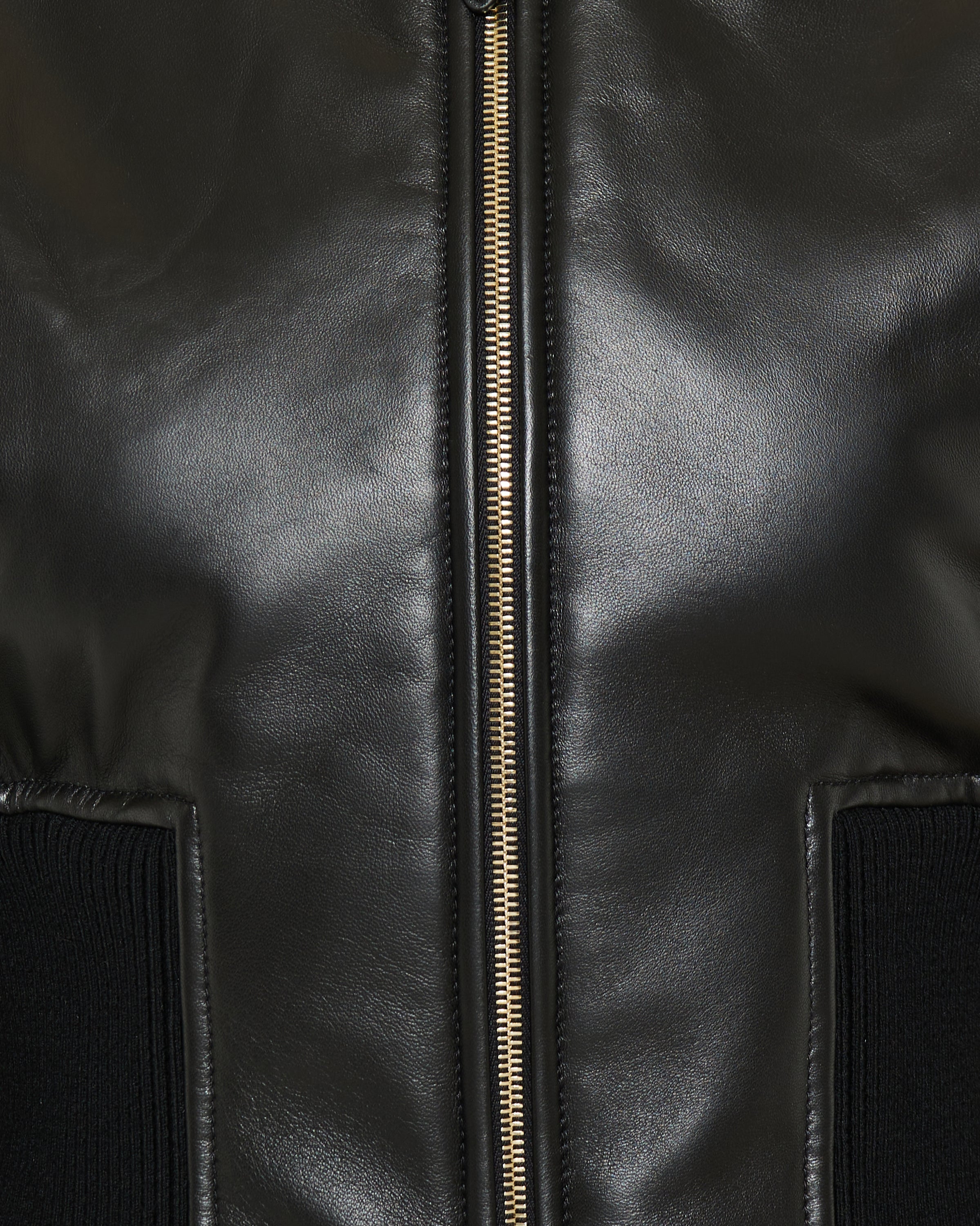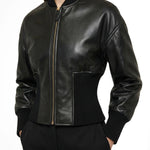 A luxurious leather bomber jacket featuring a cinched waist for a flattering, tailored silhouette. Designed for elevated casual and refined daytime ensembles, it combines contemporary tailoring with timeless elegance. Smooth leather and precise construction ensure versatile sophistication for modern wardrobes and statement outerwear looks.