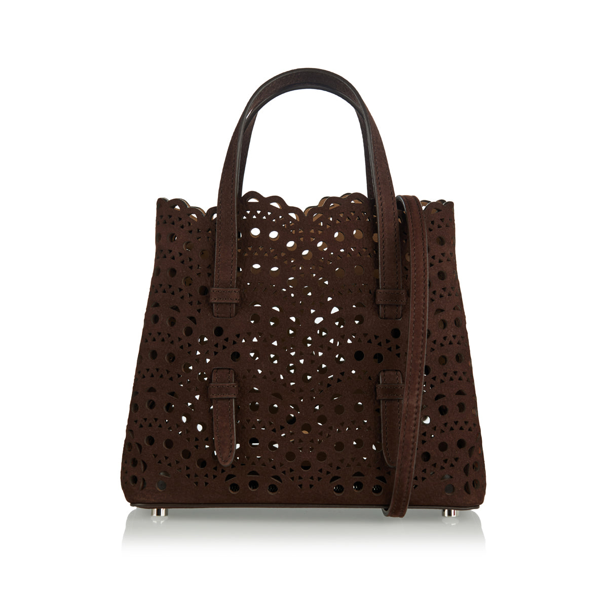 A compact yet sculptural shoulder bag crafted from soft nubuck calfskin, distinguished by the signature Vienne‑inspired pattern and clean, minimalist lines. Its expandable sides with snap‑fastening, dual top handles and detachable strap offer versatile carry options for day‑to‑night wear. With a detachable pouch and understated silhouette, it balances refined craftsmanship and everyday practicality — ideal for polished urban outfits or understated elegant occasions.
