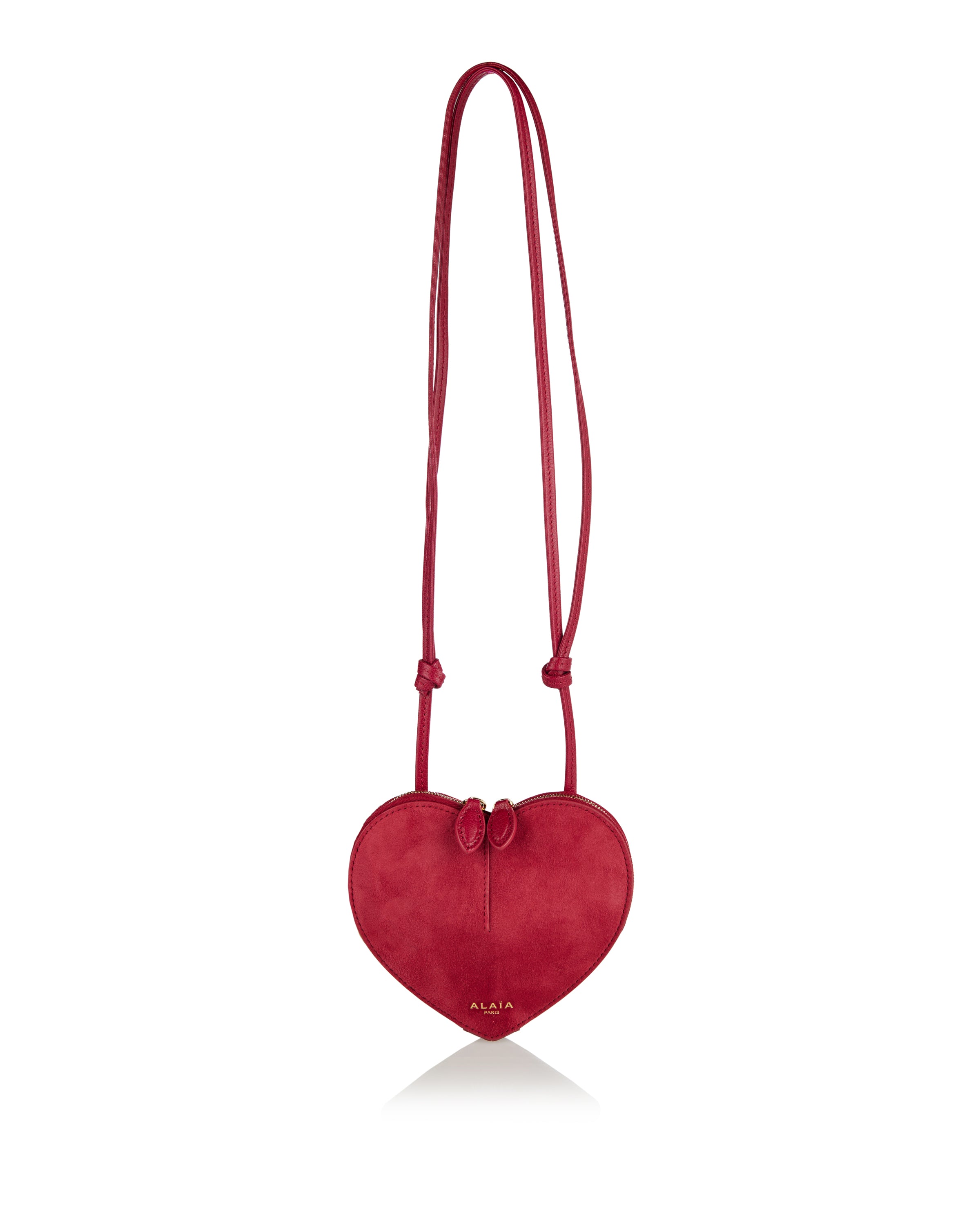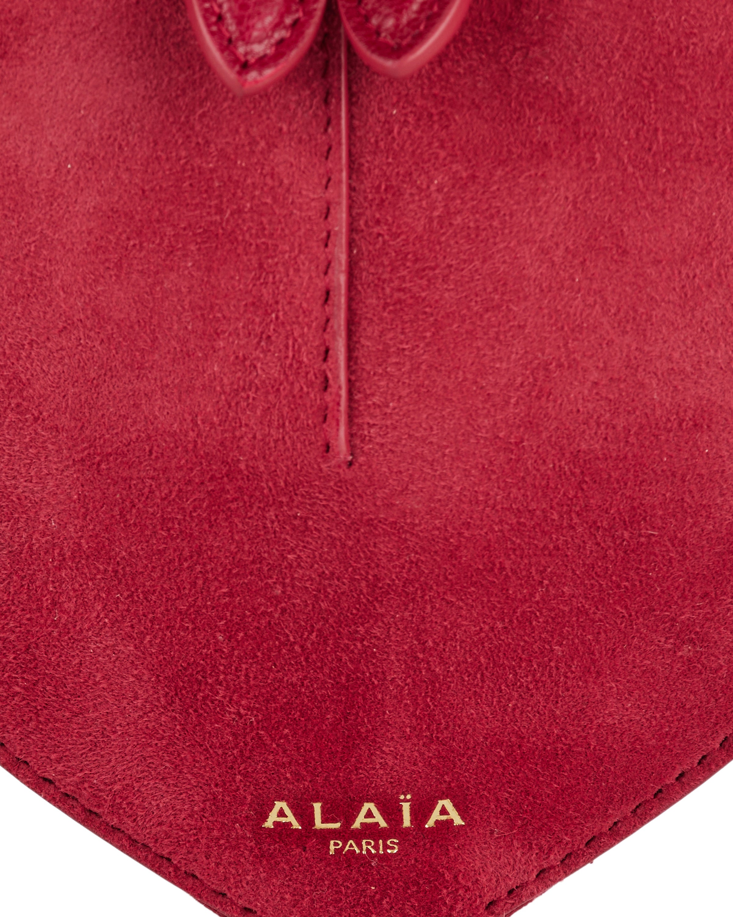 The ALAÏA le coeur small bi-material bag in leather presents a sculptural heart-shaped silhouette rendered in a blend of soft suede and polished goatskin with a top zip closure and adjustable strap. Its compact proportions and refined Italian craftsmanship make it an elegant choice for elevated casual or formal ensembles.