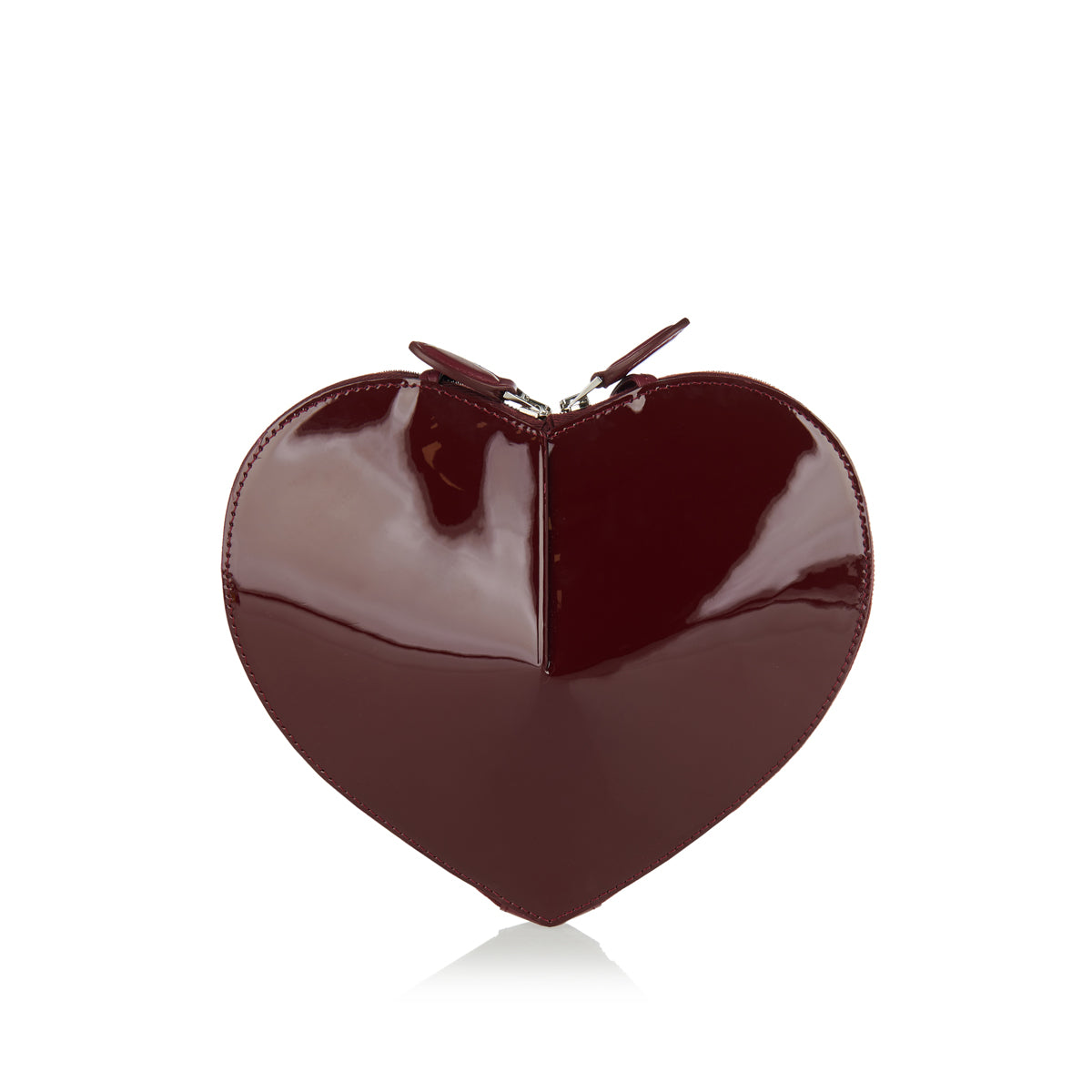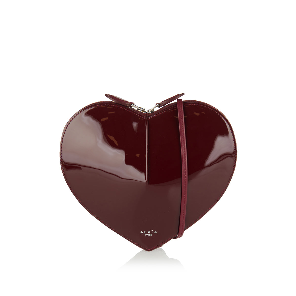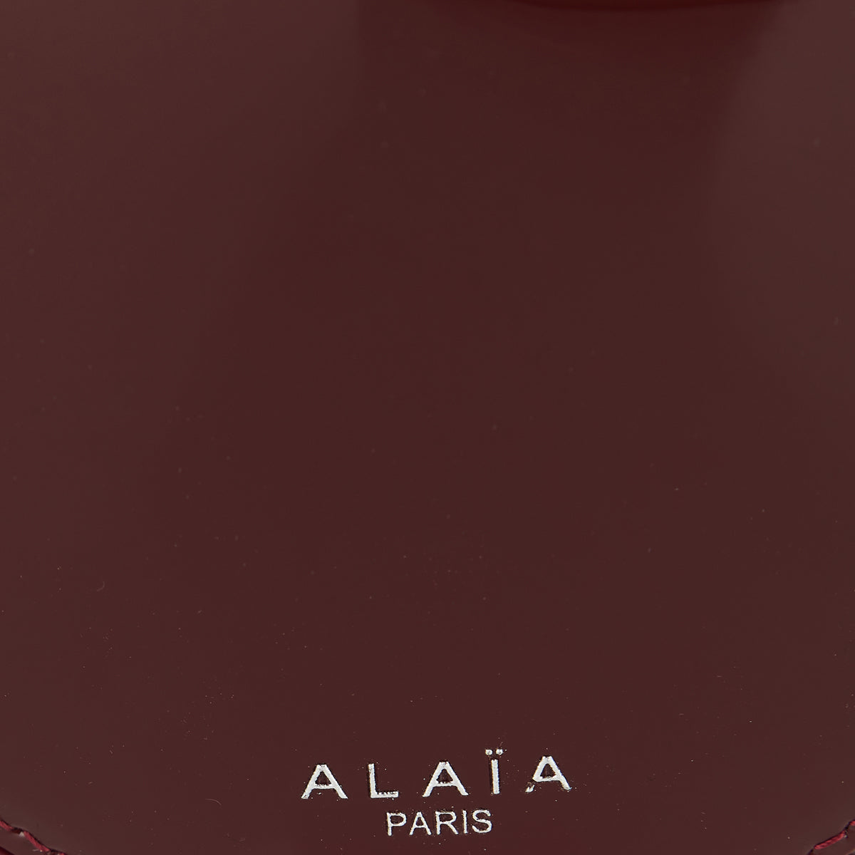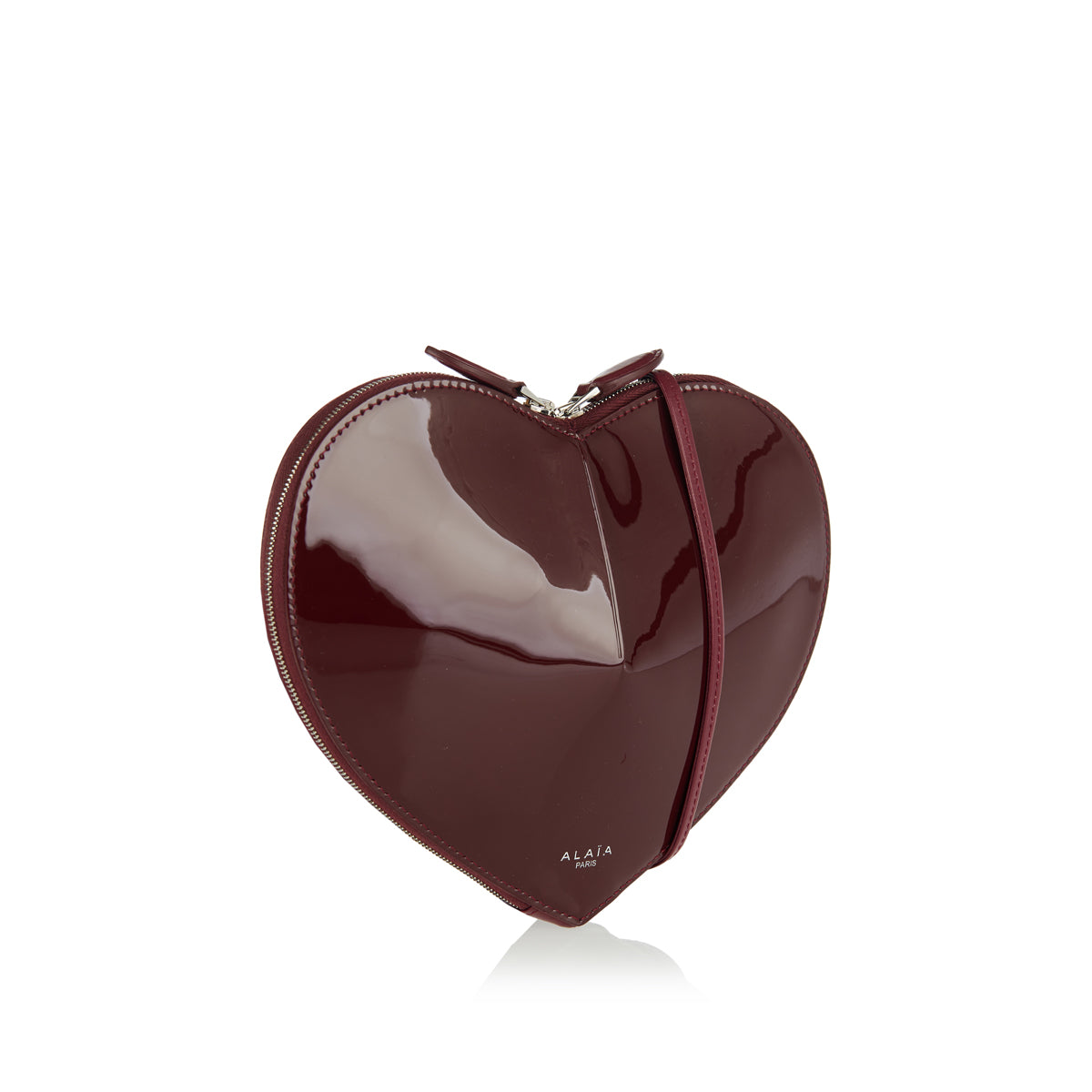 Making a statement with its heart shape, the Maison's Coeur bag is sculpted from shiny leather in burgundy. The compact design features zip closure, one compartment and adjustable strap. Alaïa signature is detailed at the front.