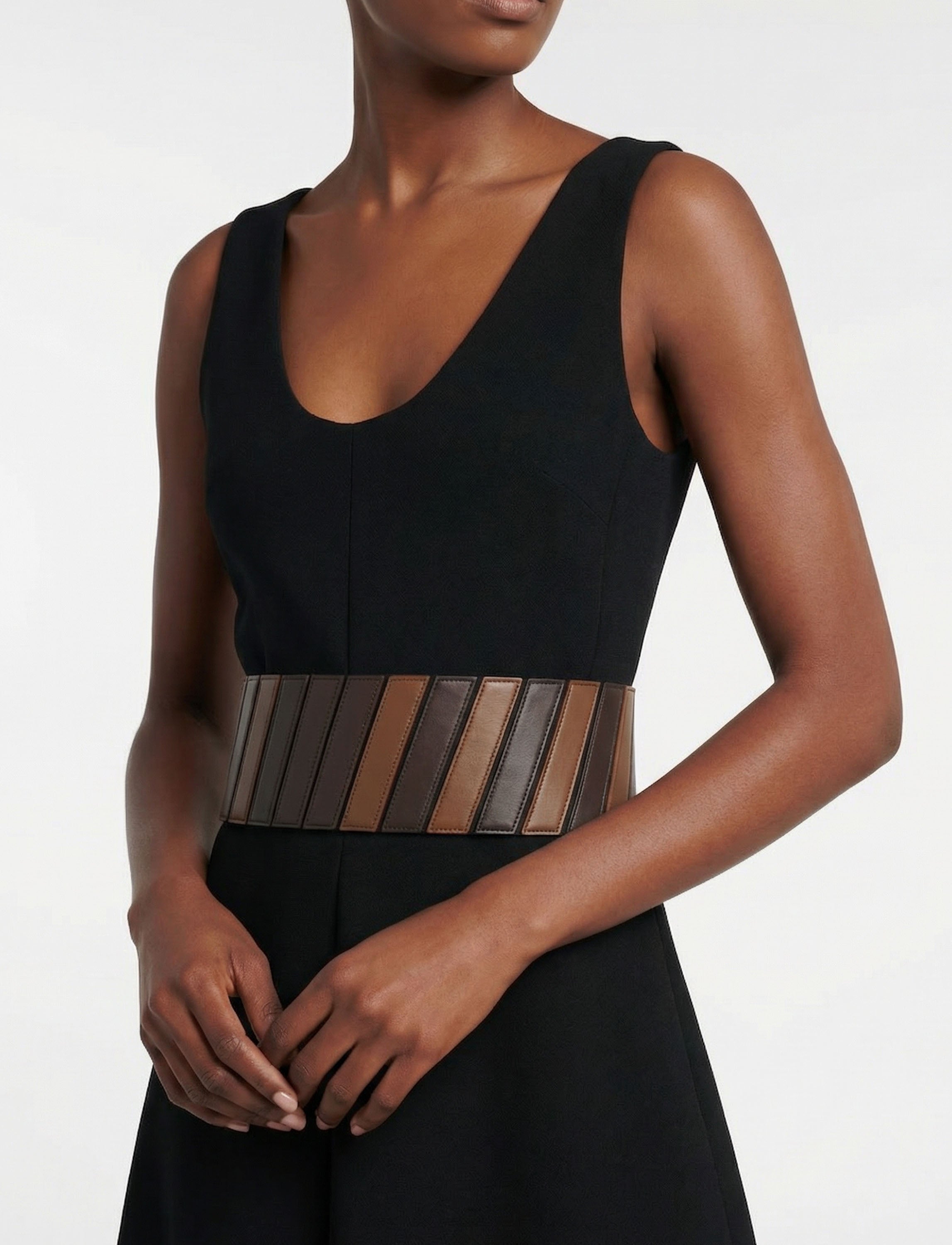 Sculptural bustier belt designed to contour and define the waist, featuring an elasticated construction for a precise yet flexible fit.