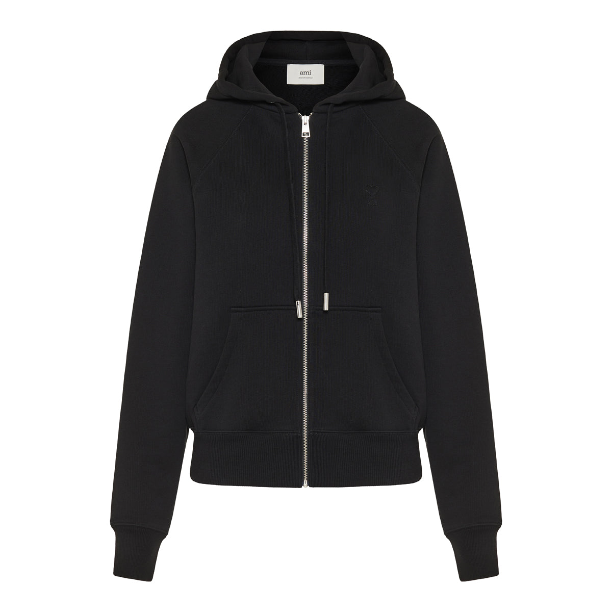 Crafted from premium cotton, this zip-up hoodie features a drawstring hood, front zip fastening, and concealed side-slit pockets. Long sleeves and clean lines provide a structured yet relaxed profile, while the subtle 'Ami de Cœur' detail signifies AMI Paris’s minimalist signature.
