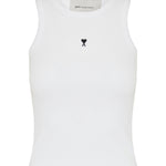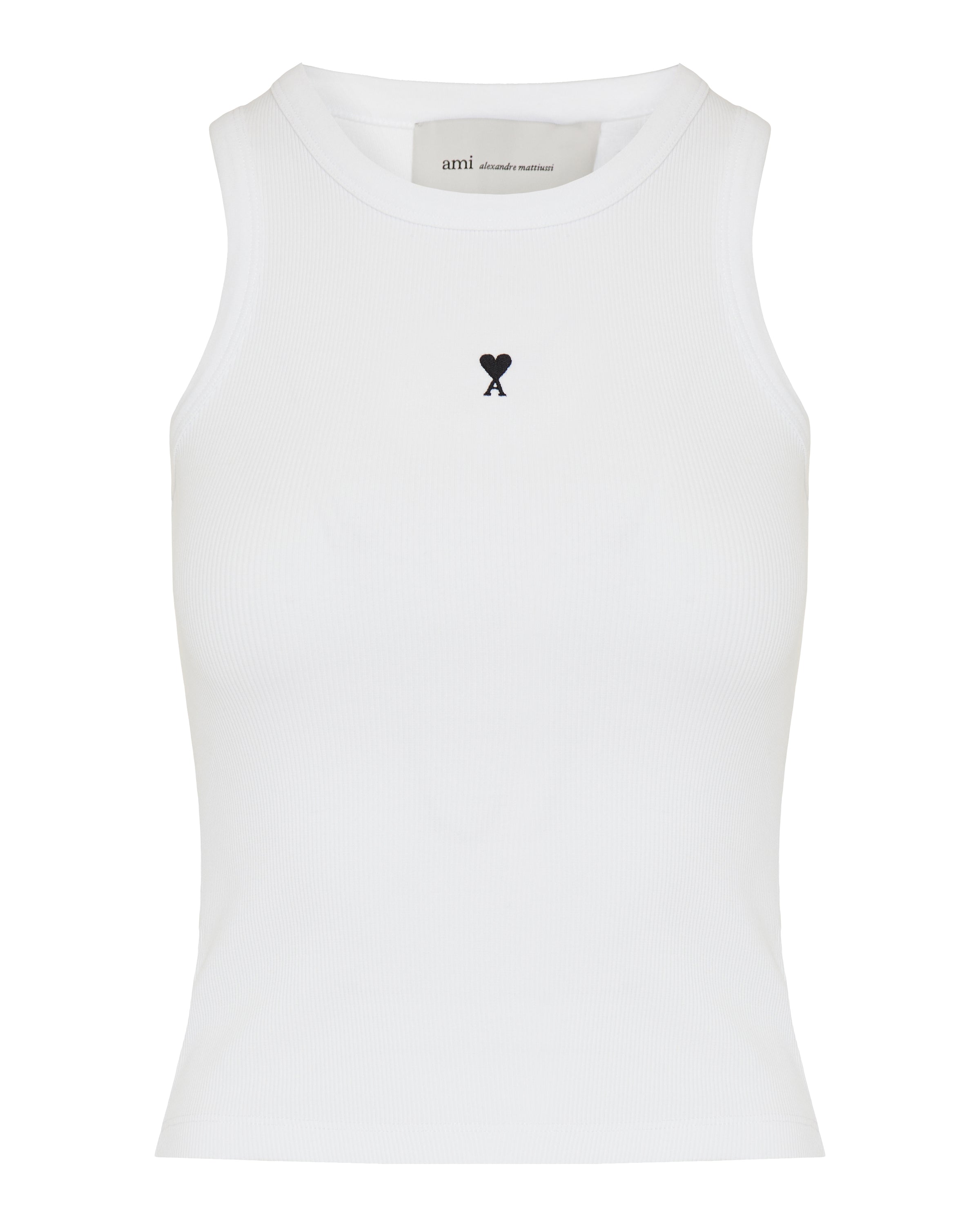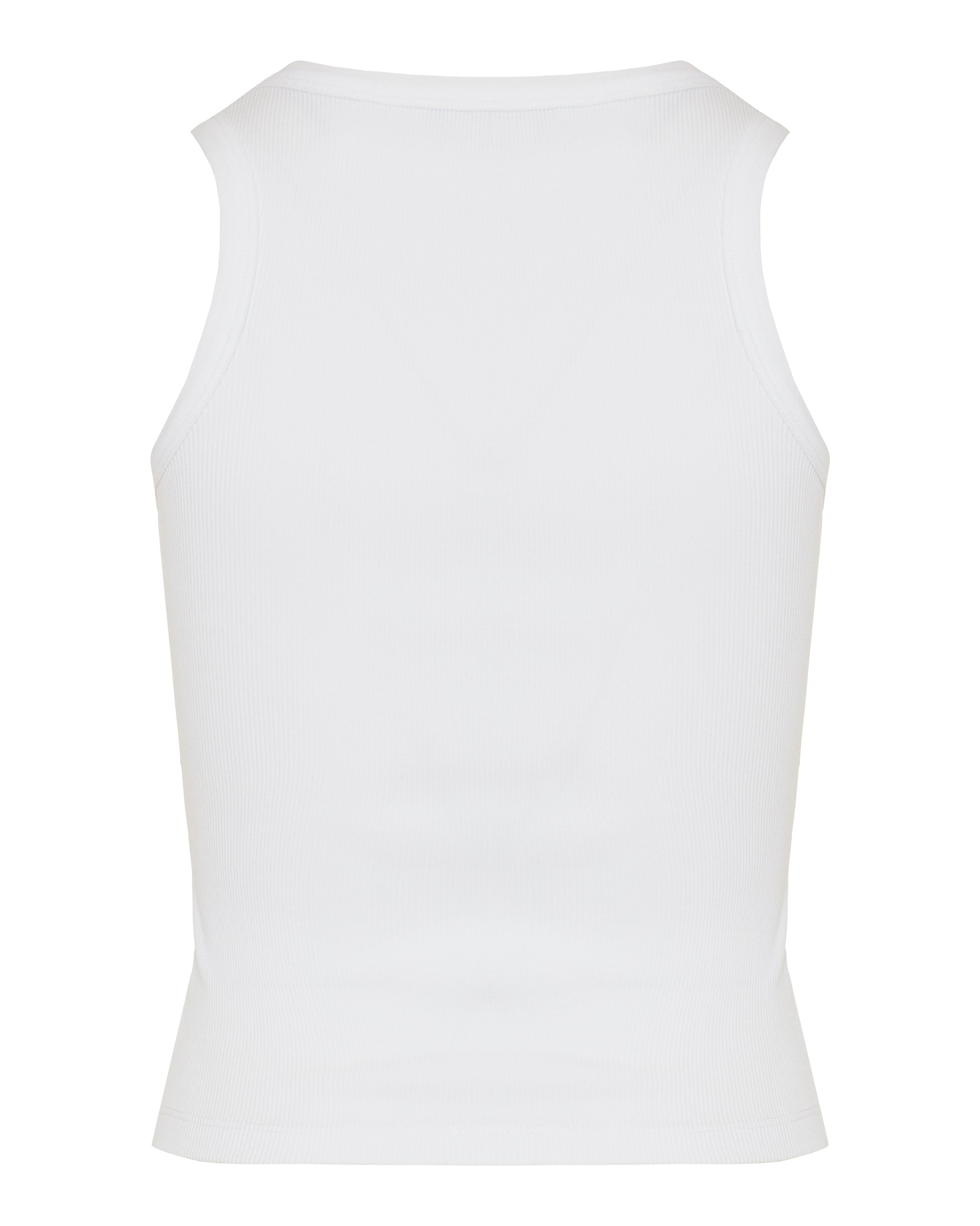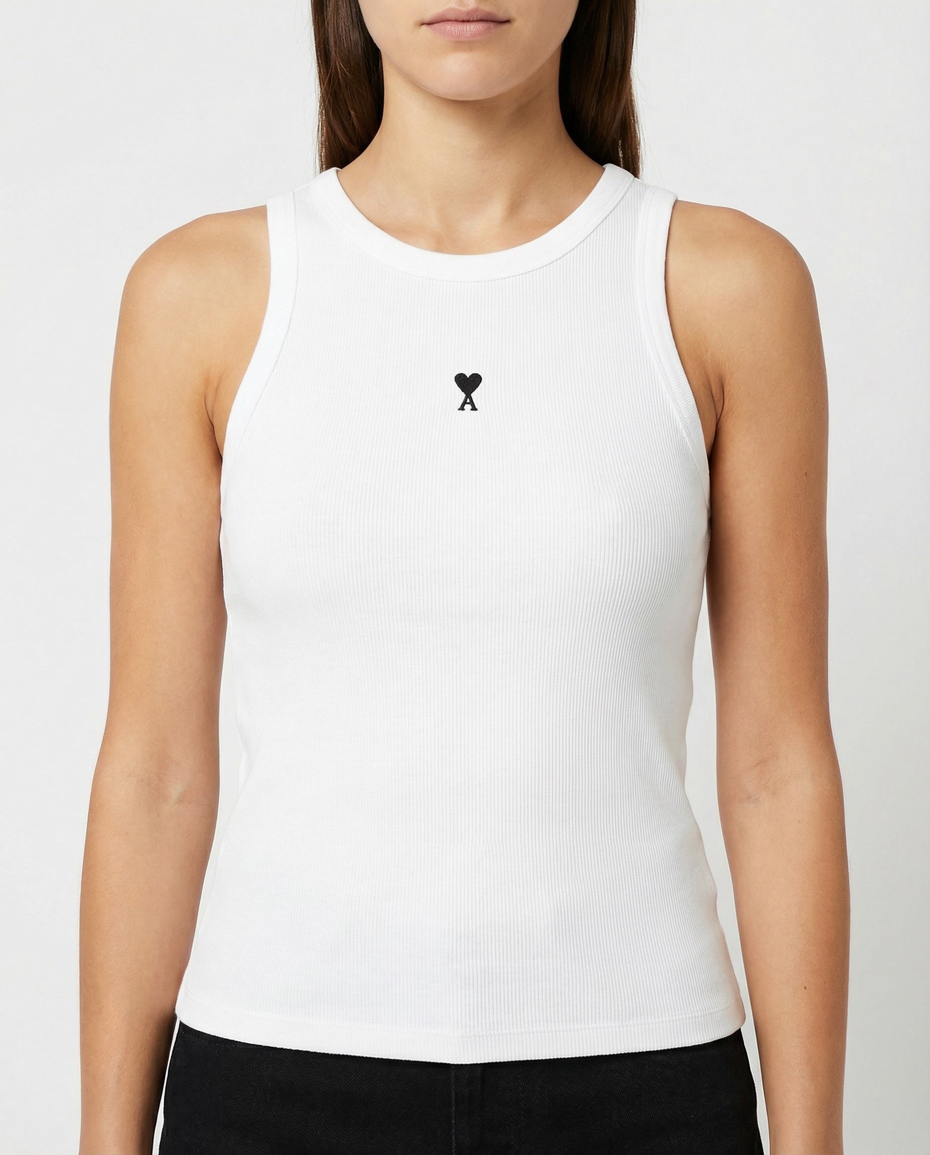 A sleeveless tank crafted from soft cotton with a relaxed fit, elevated by a subtle embroidered logo detail at the chest.