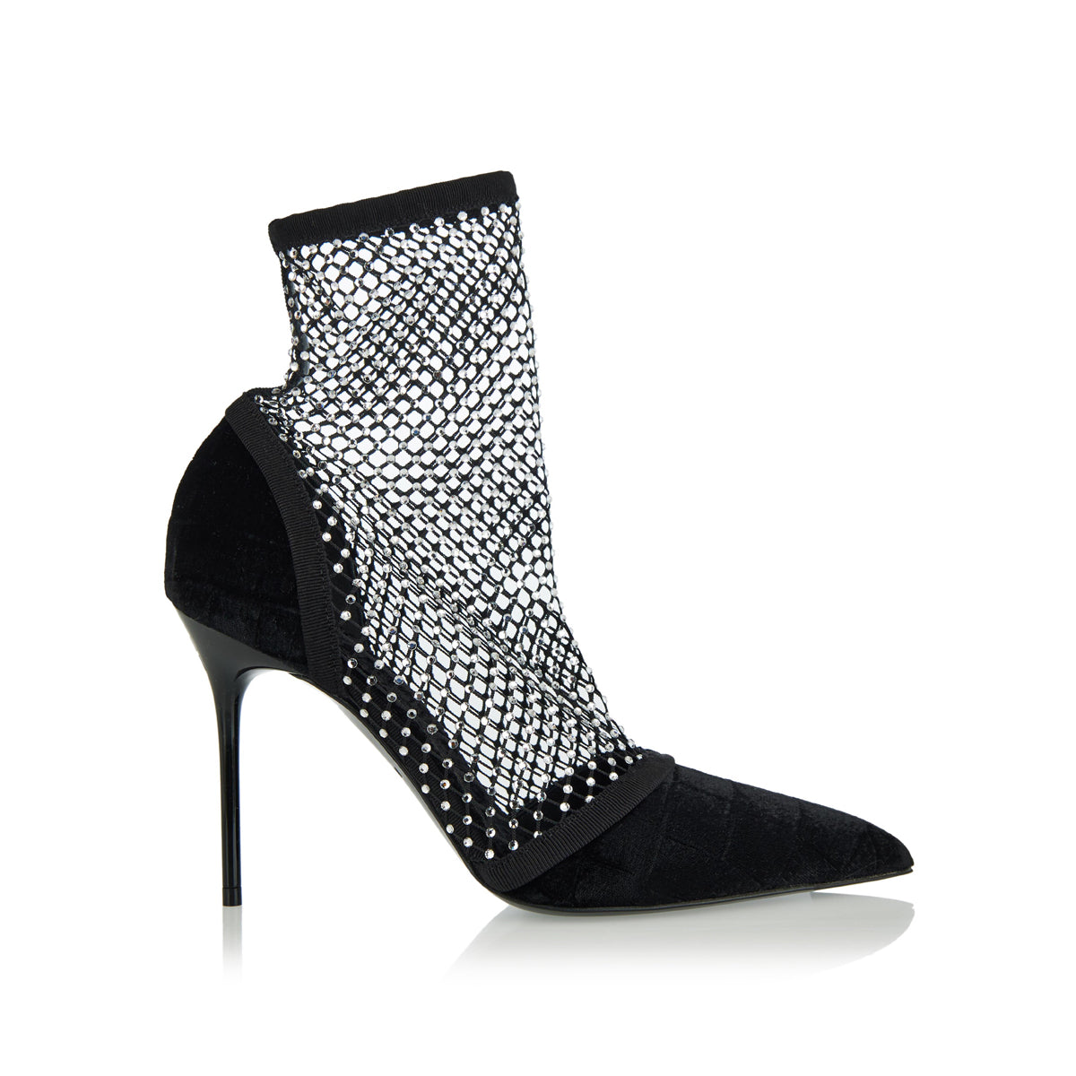 Velvet strass mesh ankle boots