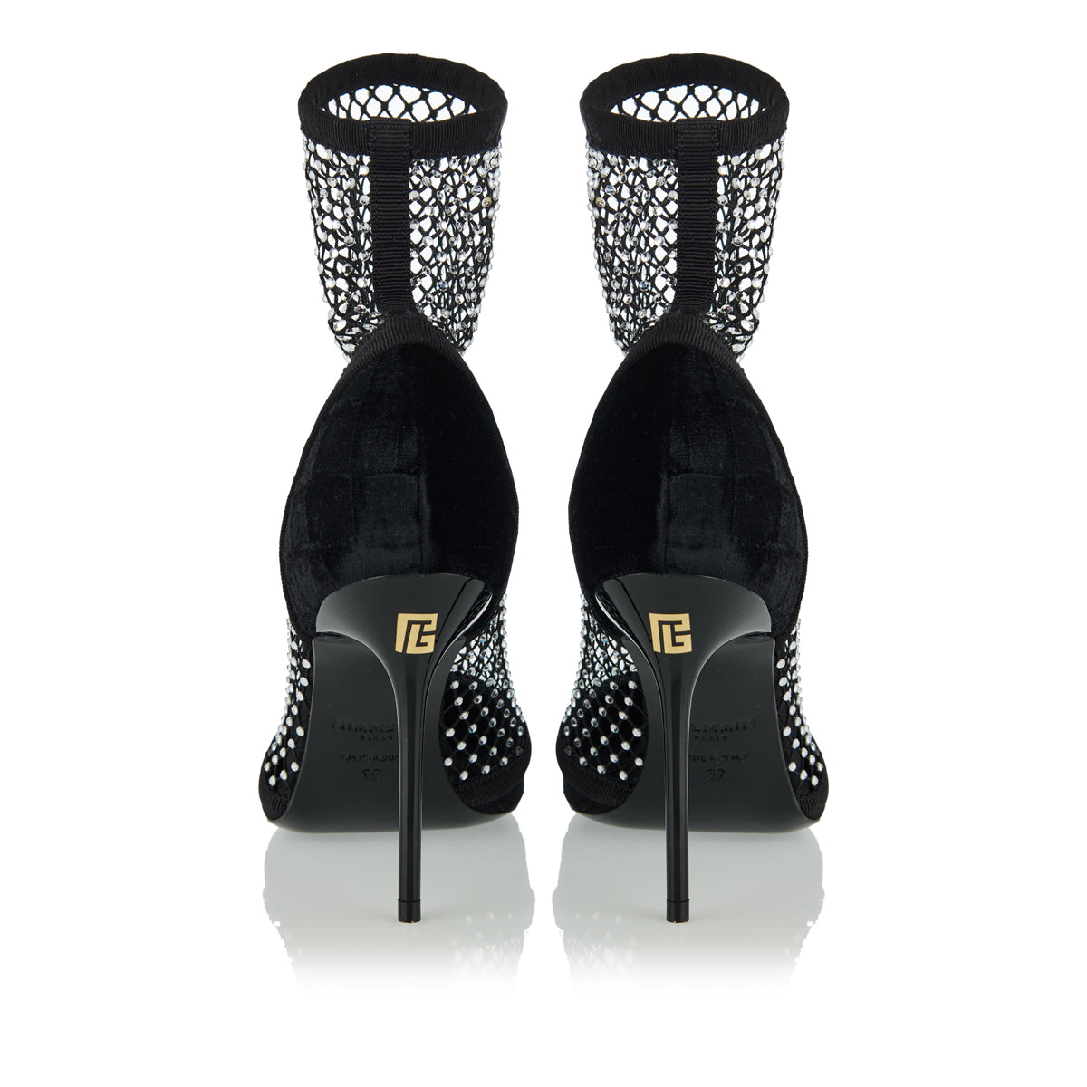 Balmain Velvet strass mesh ankle boots
