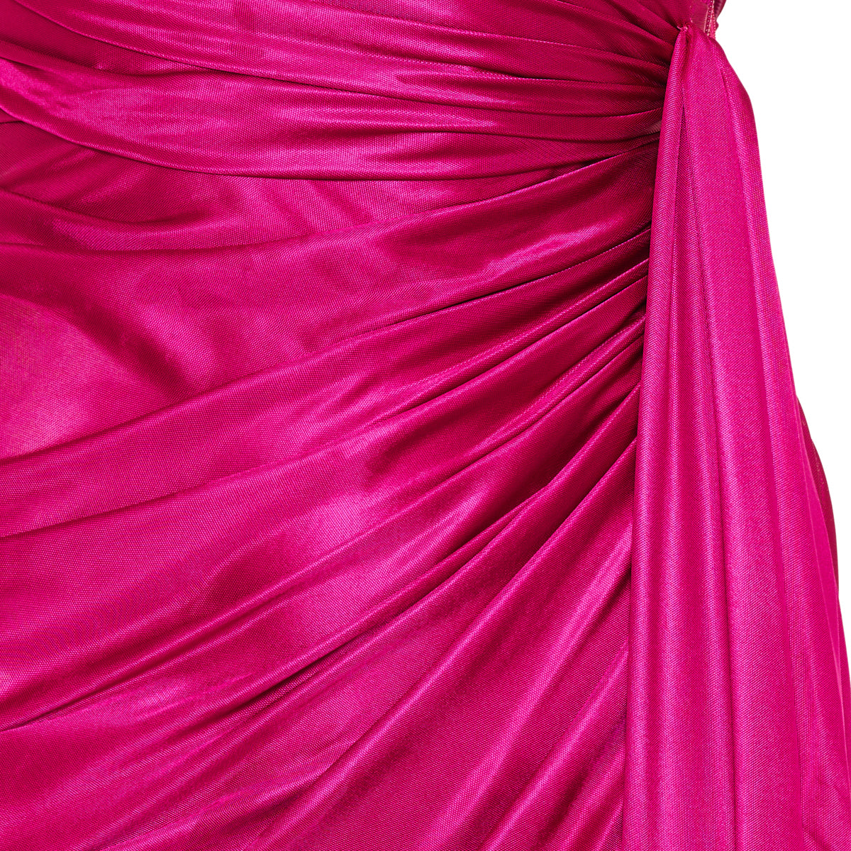 A sleek halter-neck silhouette in fluid viscose jersey, featuring asymmetric gathers, a side knot panel, and a front slit. Effortlessly refined, this long, slim dress transitions from elevated daywear to dramatic evening style.