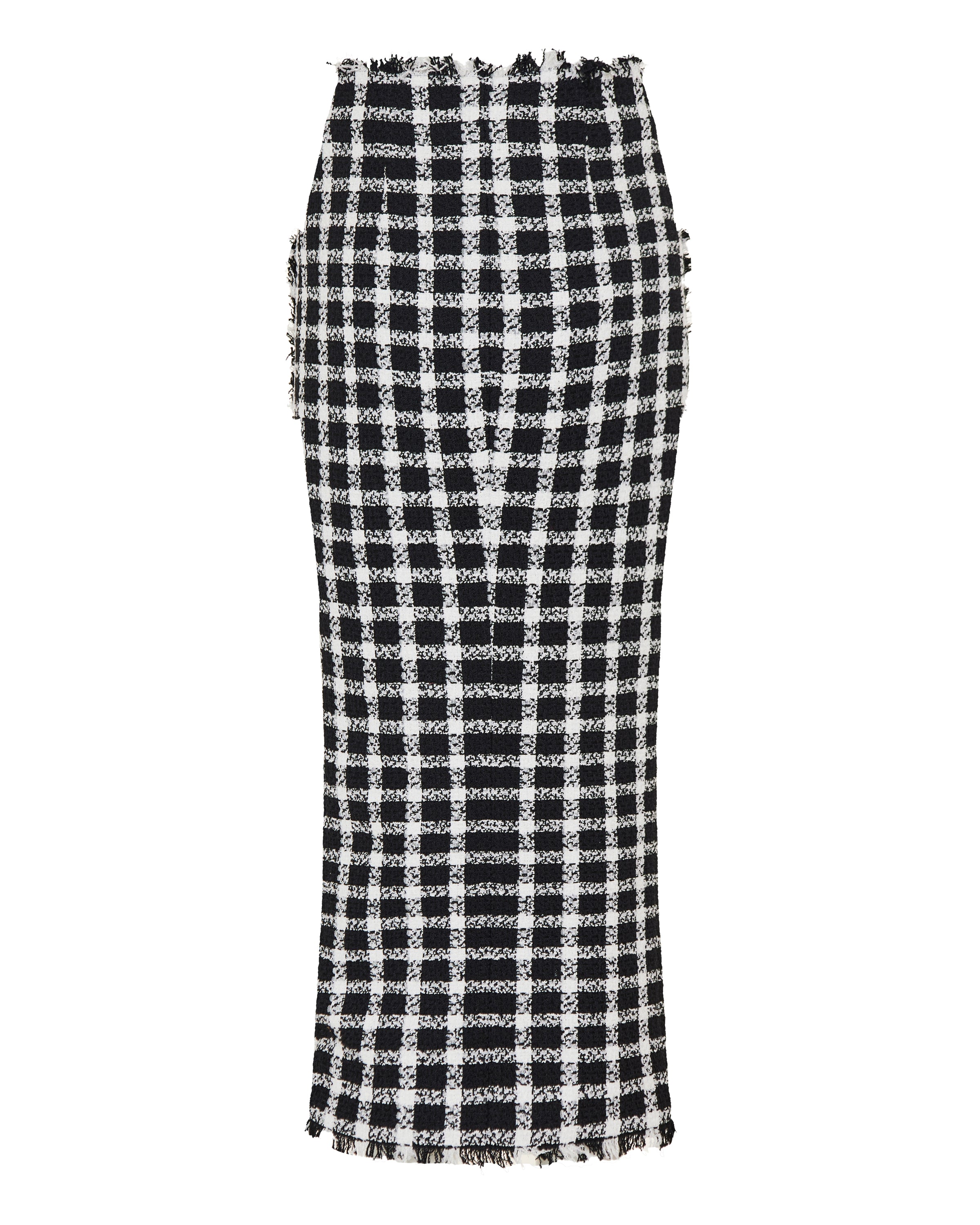 Refined and architectural, this long skirt reflects Balmain’s distinctive approach to modern tailoring. Designed with a structured, elongated silhouette, it is crafted in tweed with a classic gingham pattern that adds depth and graphic balance. Elegant yet assertive, it is suitable for formal occasions, professional settings, and elevated daywear, offering a polished statement with contemporary Parisian character.