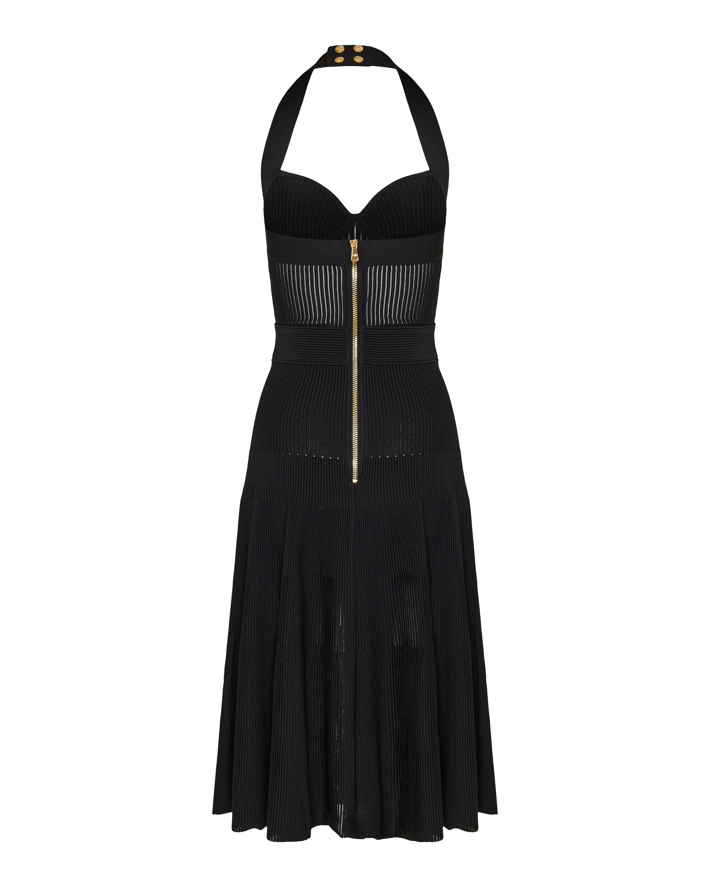 BALMAIN Halterneck pleated knit midi dress