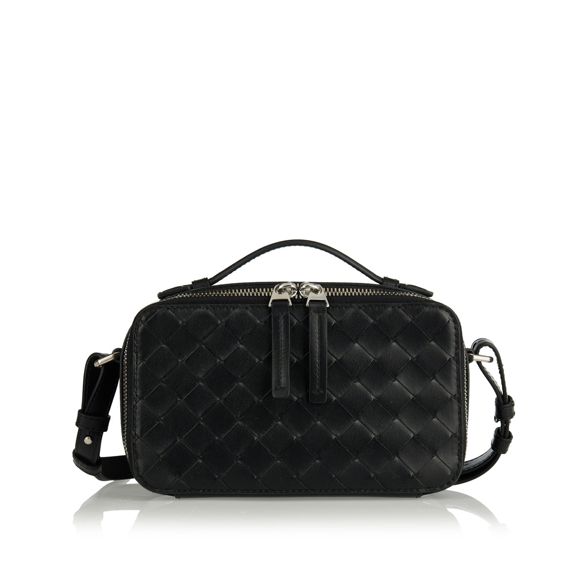 The Bottega Veneta Getaway phone pouch is a refined accessory crafted from Intrecciato calfskin leather. Featuring a handle and an adjustable cross-body strap, this pouch offers both style and functionality. Ideal for carrying your essentials, it combines luxury with practicality.