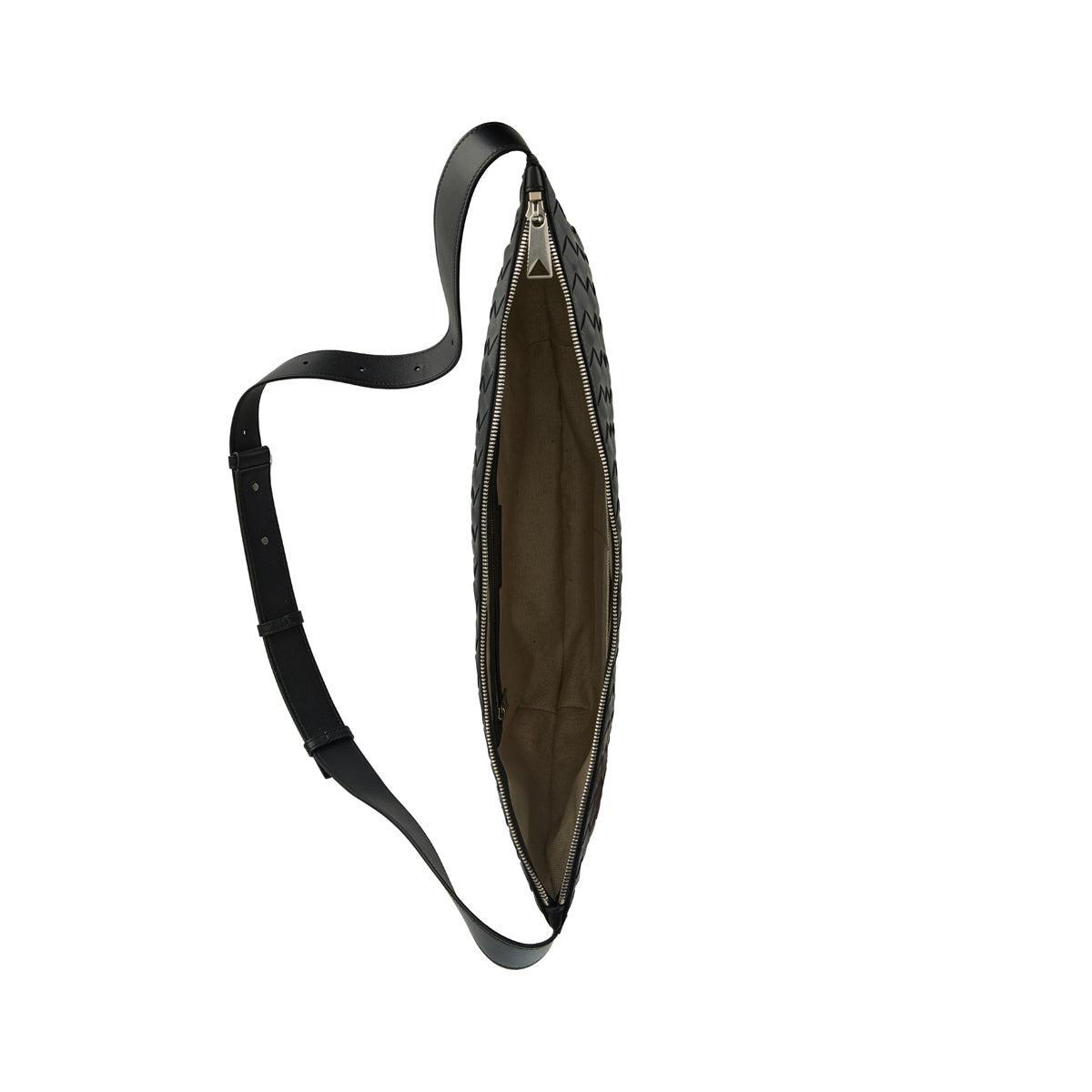 A sophisticated sling bag crafted with the house’s signature weaving technique and luxurious textured leather. The sleek, elongated silhouette and adjustable shoulder strap give it a versatile, refined character. Functional yet elegant, it is ideal for urban daywear or elegant travel settings, offering understated luxury and practicality.