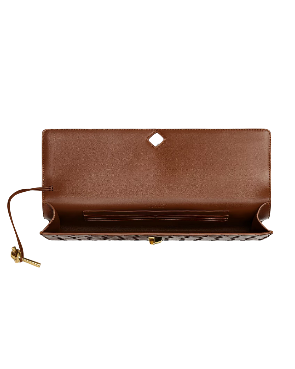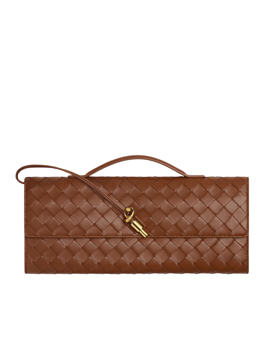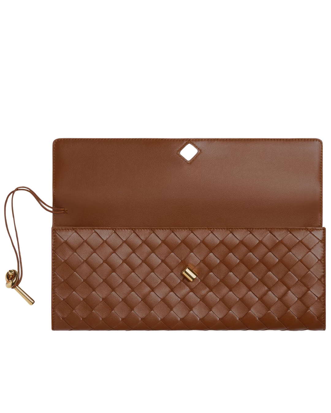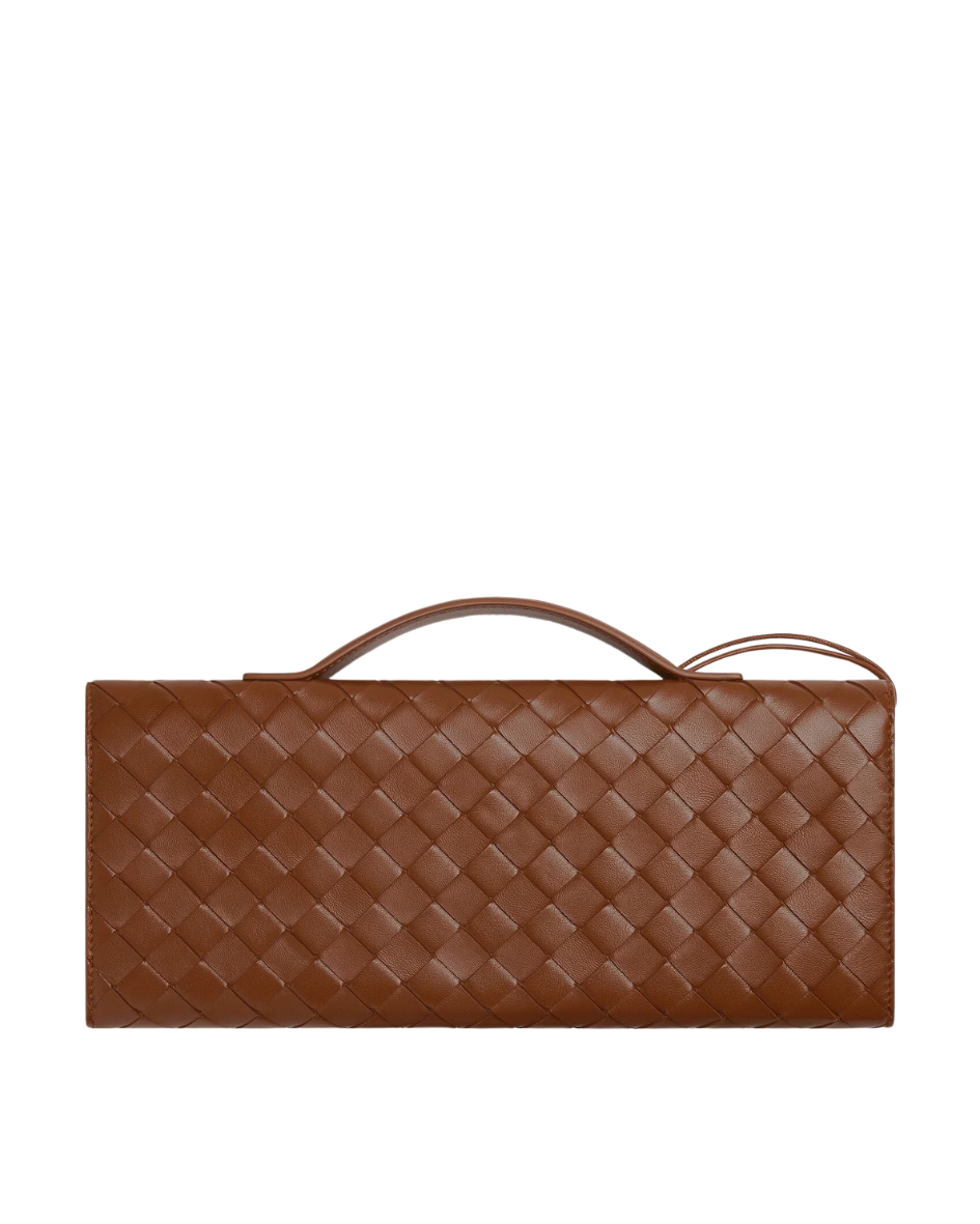 Rooted in Bottega Veneta’s heritage of artisanal leatherwork, the Andiamo clutch bag showcases the house’s signature Intrecciato technique, introduced in the 1970s. Woven from supple leather, it features a refined, structured silhouette accented with the iconic Knot detail. Elegant and versatile, this clutch is suited for evening events, formal occasions, and elevated daywear where discreet luxury is essential.
