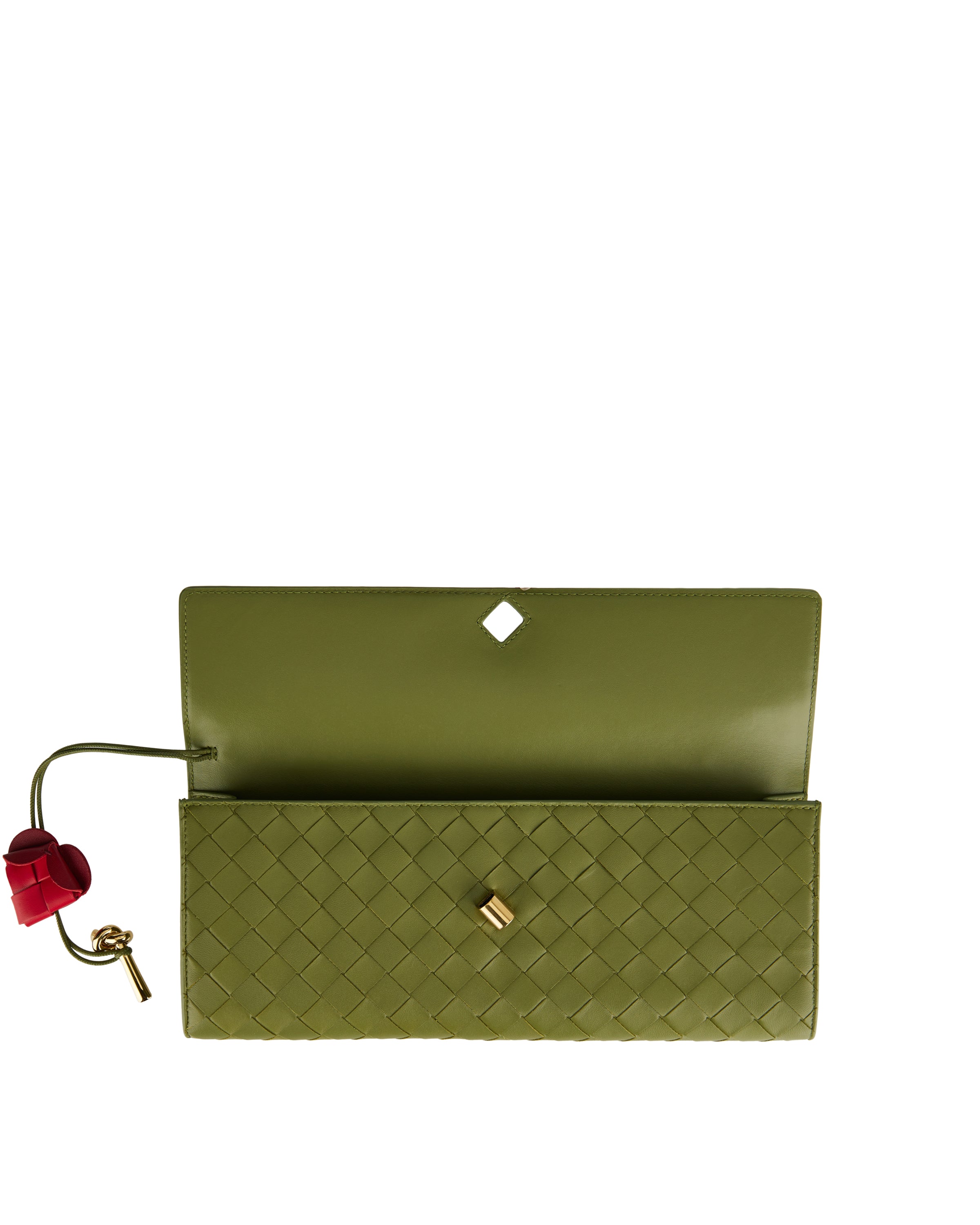 Clutch defined by the iconic Andiamo design, crafted with a softly structured silhouette that balances elegance and modern ease for day-to-evening styling.