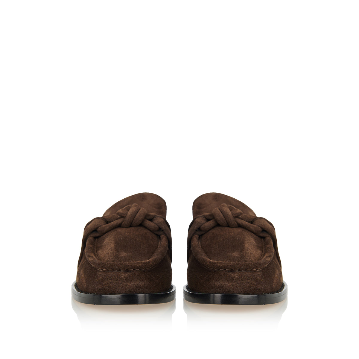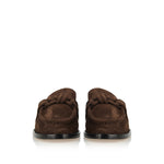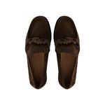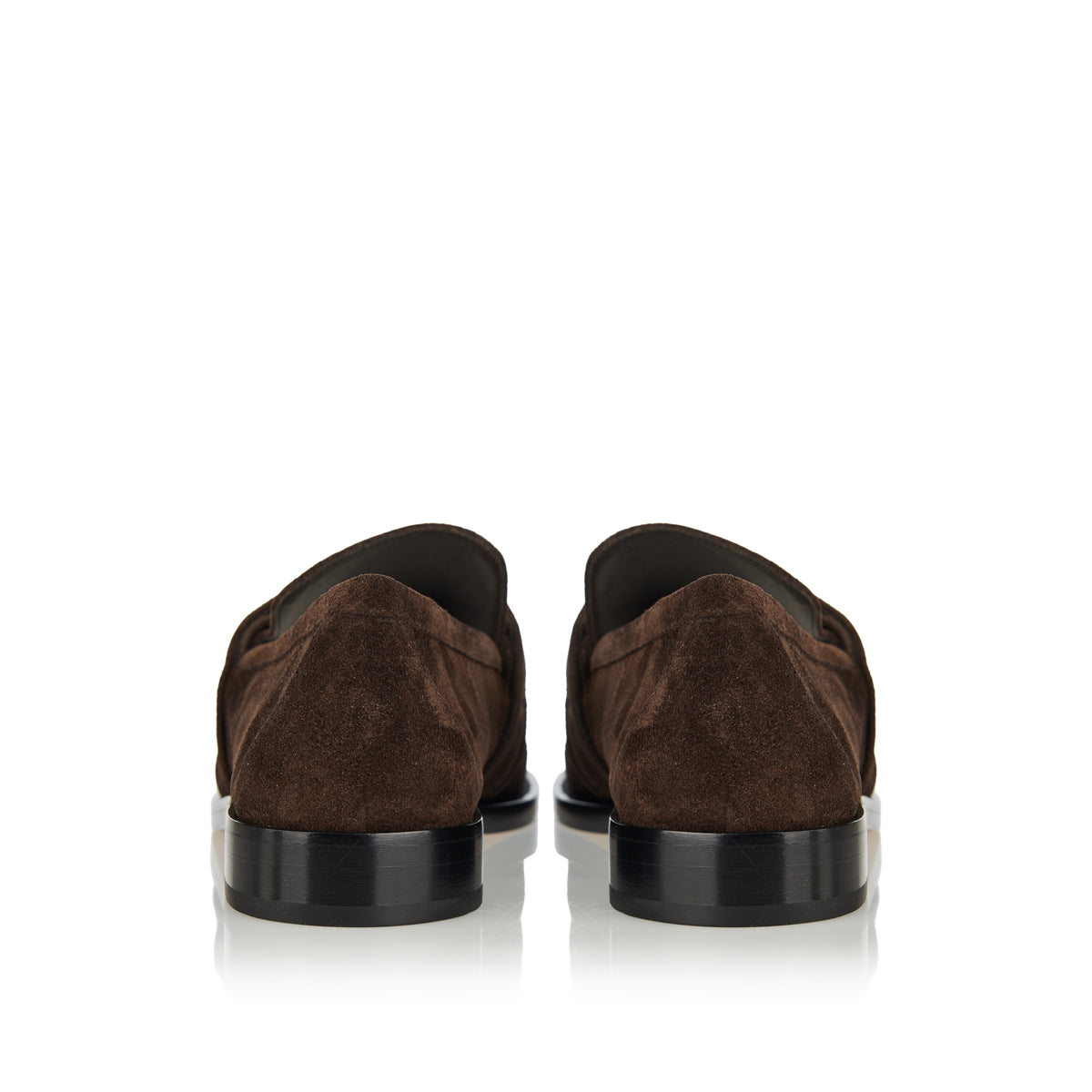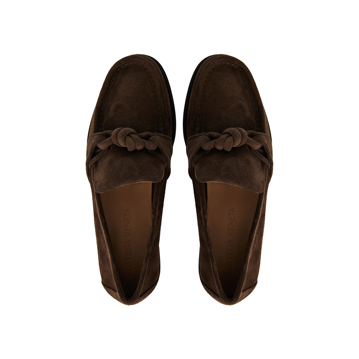 The Bottega Veneta Astaire moccasins are crafted from Fondente brown suede with a classic silhouette, designed for refined daywear and timeless elegance. Featuring meticulous craftsmanship and leather lining, they offer versatile sophistication while maintaining luxurious comfort.