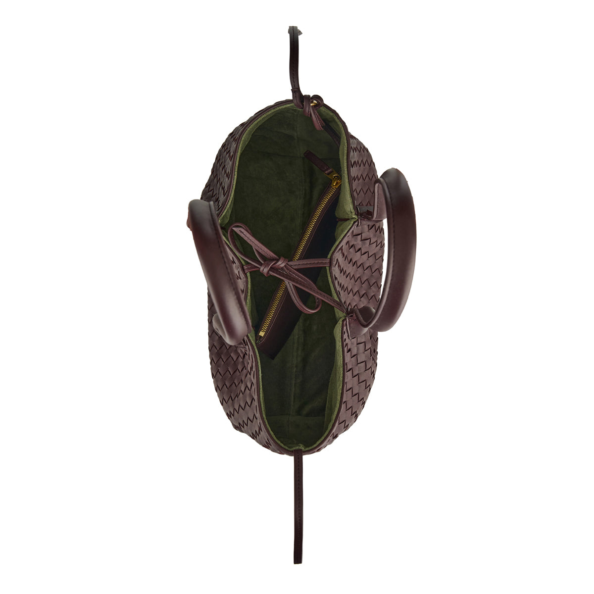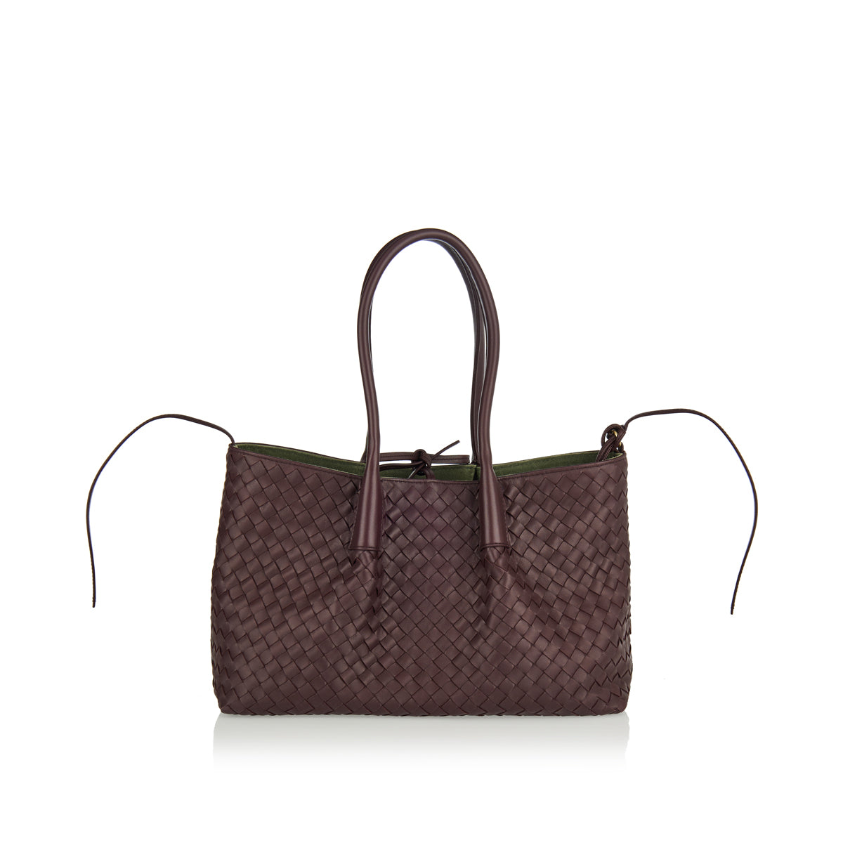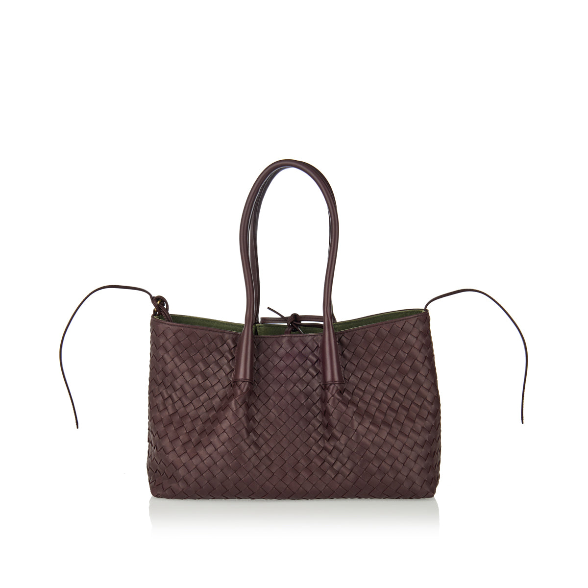 Crafted in Intrecciato silky calf leather, the Pinacoteca reversible tote embodies Bottega Veneta’s sculptural elegance and understated luxury. Its spacious structure transitions effortlessly between daily dressing and refined travel, while the suede interior and detachable zipped pocket add functional sophistication. A double leather tie closure completes the artisanal silhouette with signature subtlety.