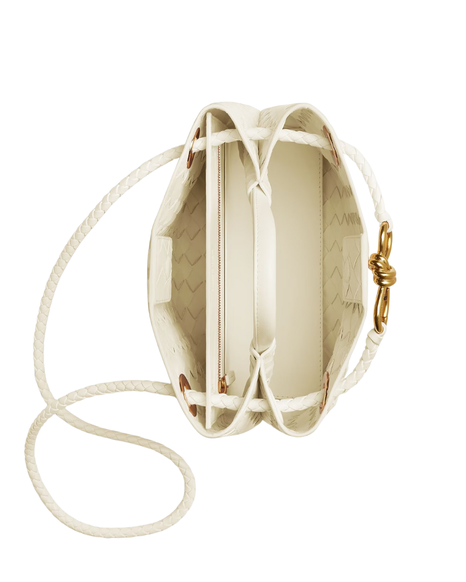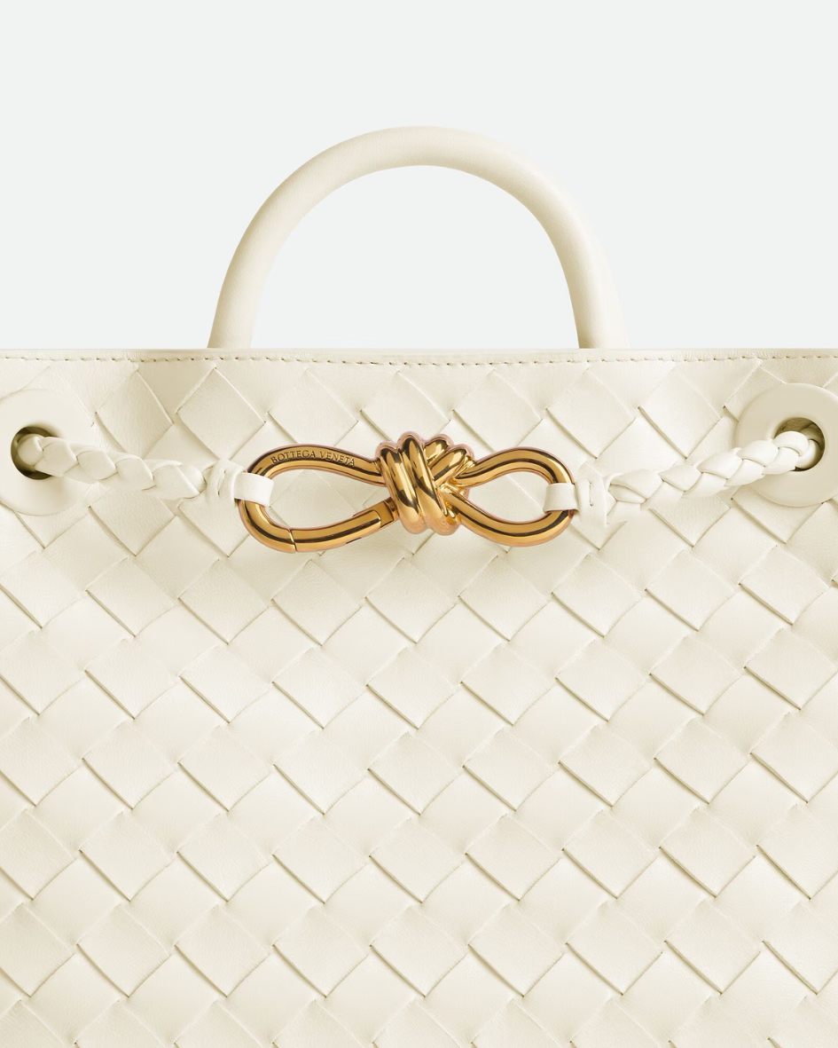 Developed in the 1970s, Bottega Veneta’s iconic Intrecciato technique defines the house’s approach to understated luxury. The Andiamo small tote bag is expertly woven from supple leather, offering a refined yet practical silhouette. Designed for everyday elegance, it features a structured shape and a distinctive Knot detail, making it suitable for both professional settings and polished daytime occasions.