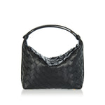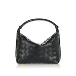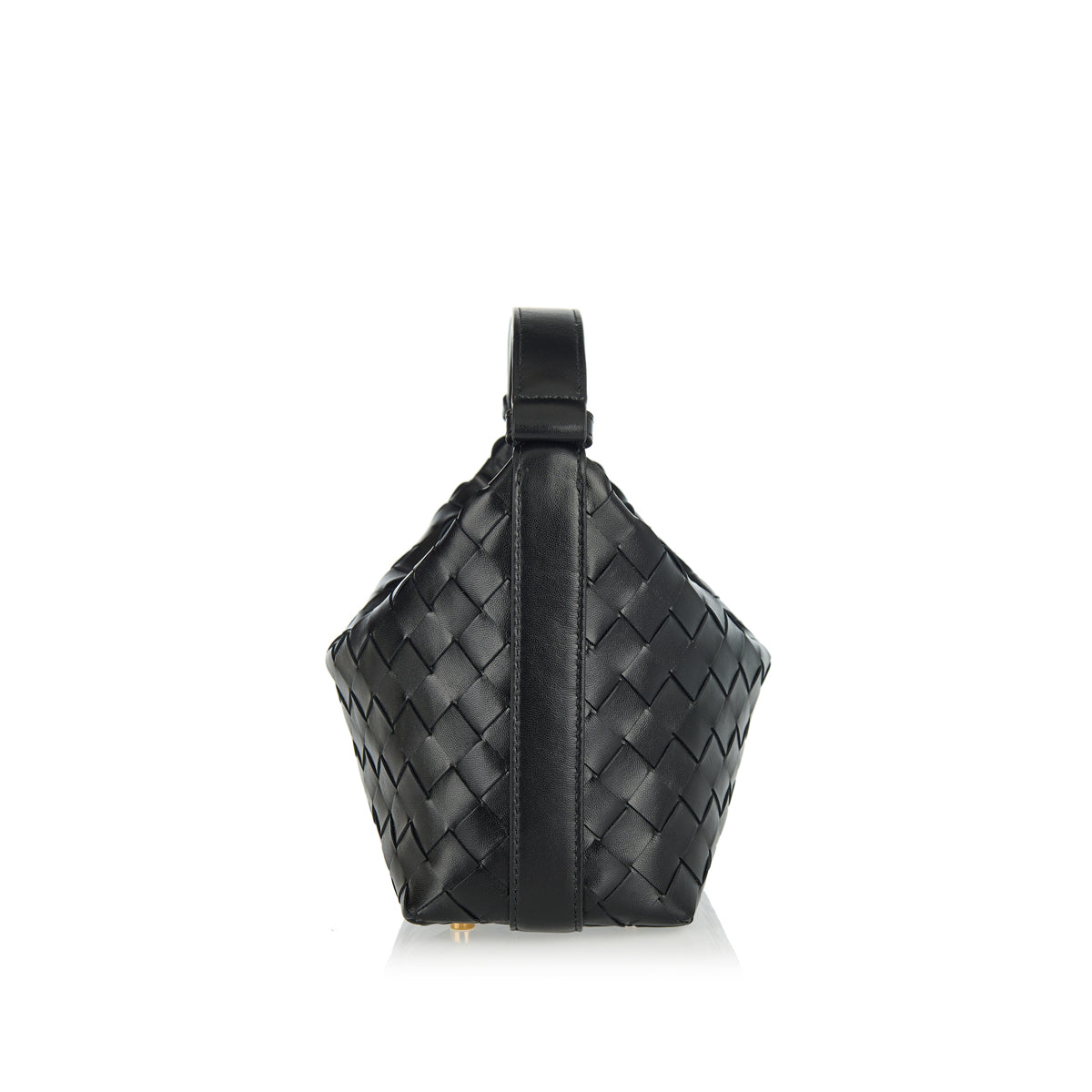 This shoulder bag with Intrecciato craftsmanship in leather features shoulder strap with adjustable press stud, one main compartment and top zip closure.
