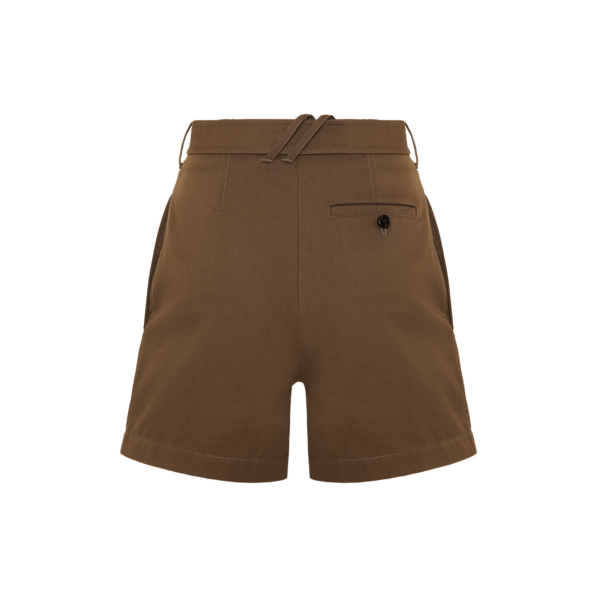 Tailored from Italian-woven cotton gabardine, these high-rise military shorts feature double pleats and a matching fabric belt with a signature B buckle. Designed for a relaxed fit, they offer both comfort and a structured silhouette. Ideal for casual and semi-formal occasions, these shorts combine classic military detailing with contemporary style.