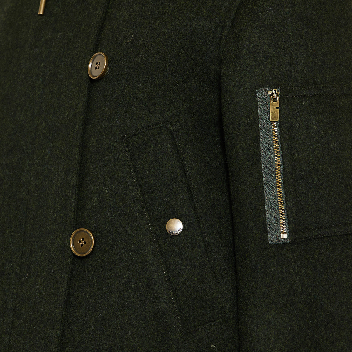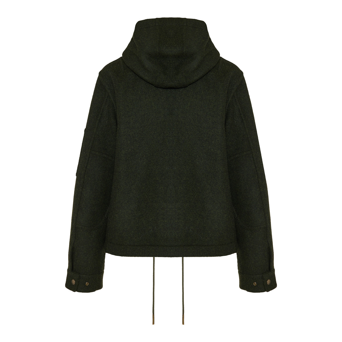 This Burberry wool hooded jacket features a regular-fit silhouette crafted from 100% wool with a contrasting Burberry Check lining. Equipped with a button and zip closure, drawcords at hood and hem, press-stud welt pockets and a sleeve zip pocket. Ideal for polished urban outerwear in cooler weather.