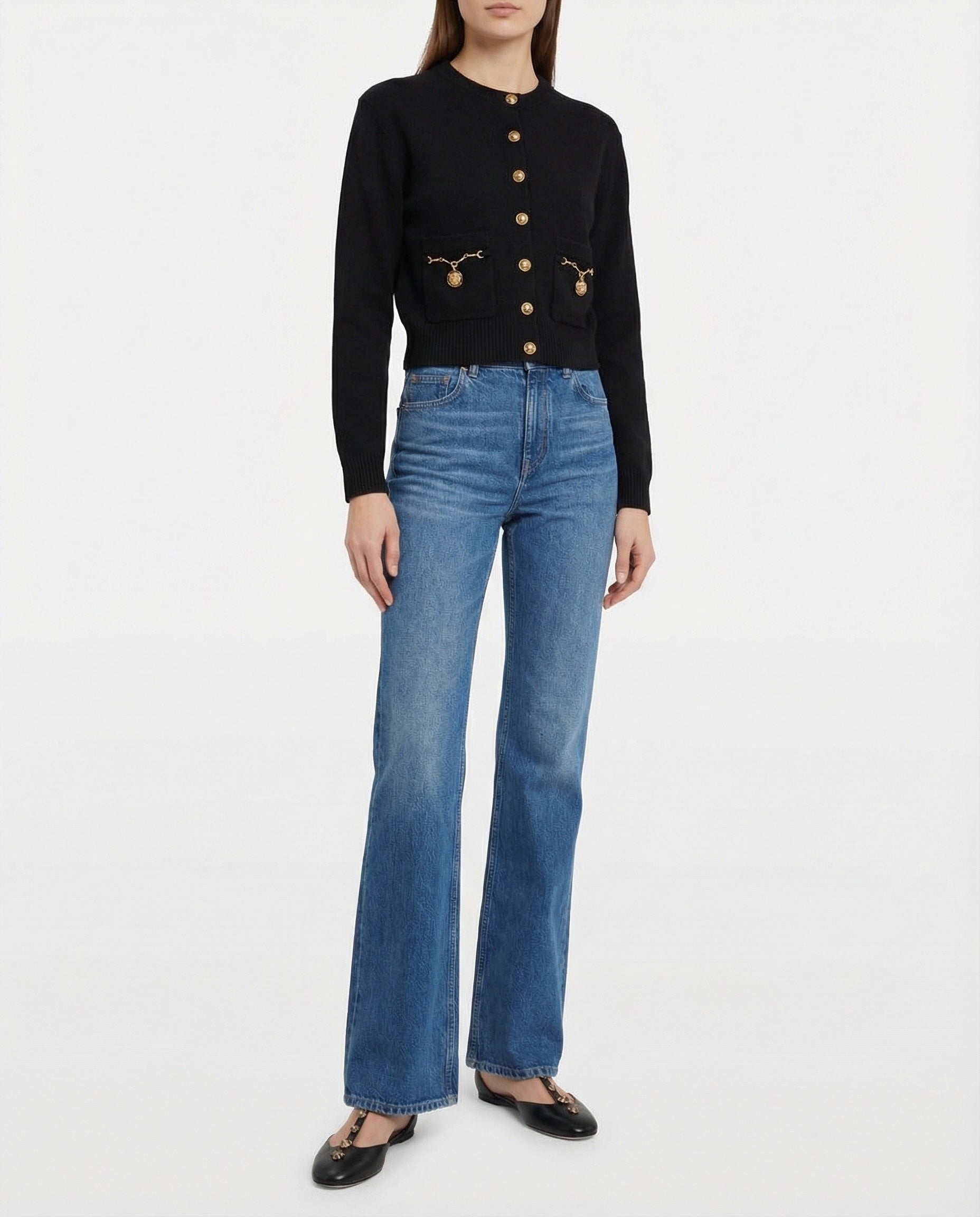 Perfect layered over a blouse or worn on its own, this cardigan is a timeless wardrobe piece that transitions seamlessly from day to evening with quiet sophistication.