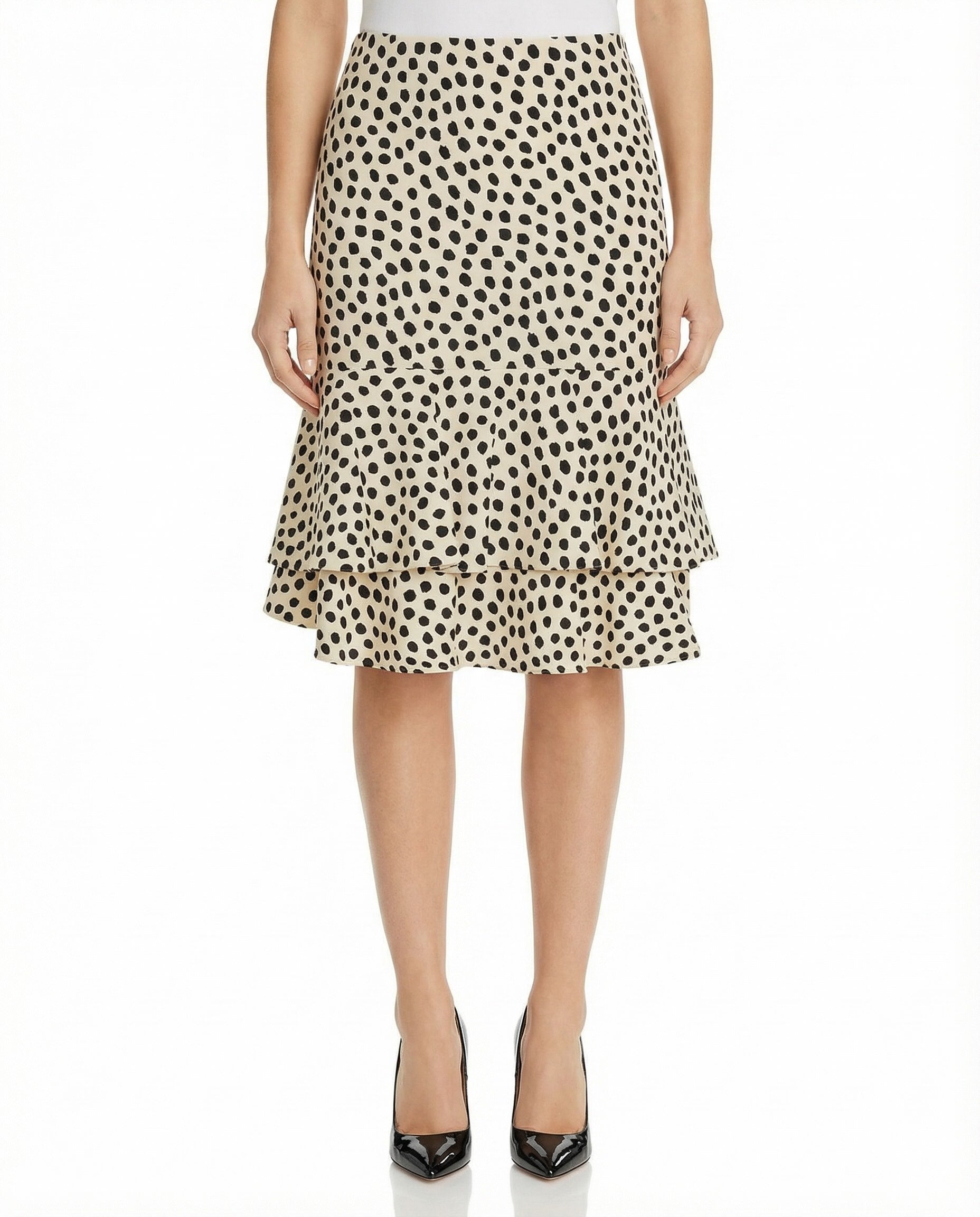 Perfect styled with a silk blouse, fine knit, or tailored jacket, this skirt transitions effortlessly from daytime charm to evening refinement.