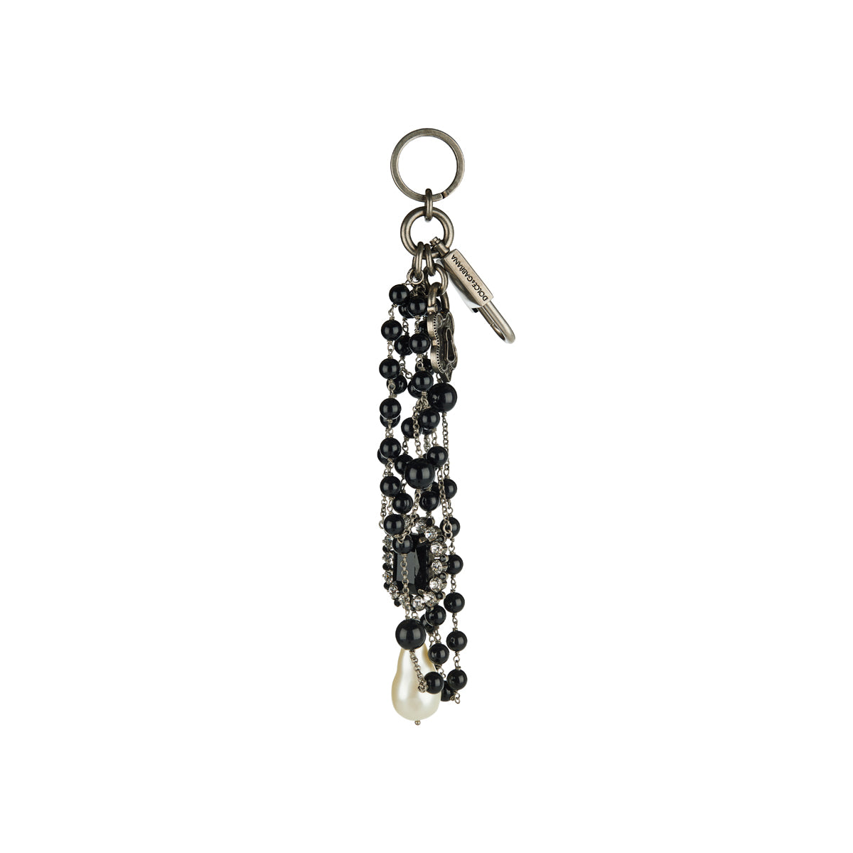 Elevate your accessory game with the Dolce & Gabbana Padlock Beaded Keyring. This statement piece features a luxurious brass padlock adorned with black and white crystal beads, suspended from a keyring and clasp. Perfect for adding a touch of opulence to your bag or keys.