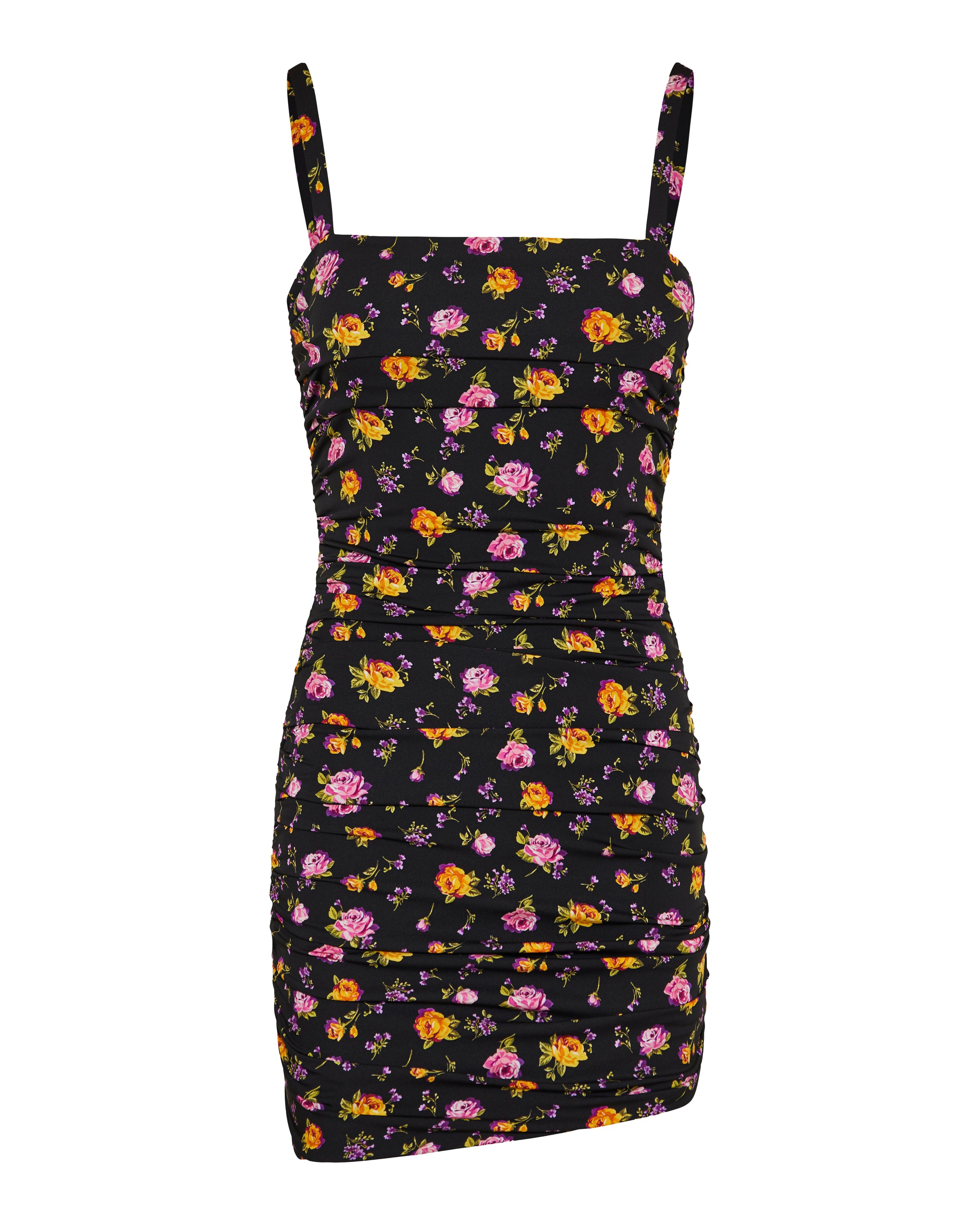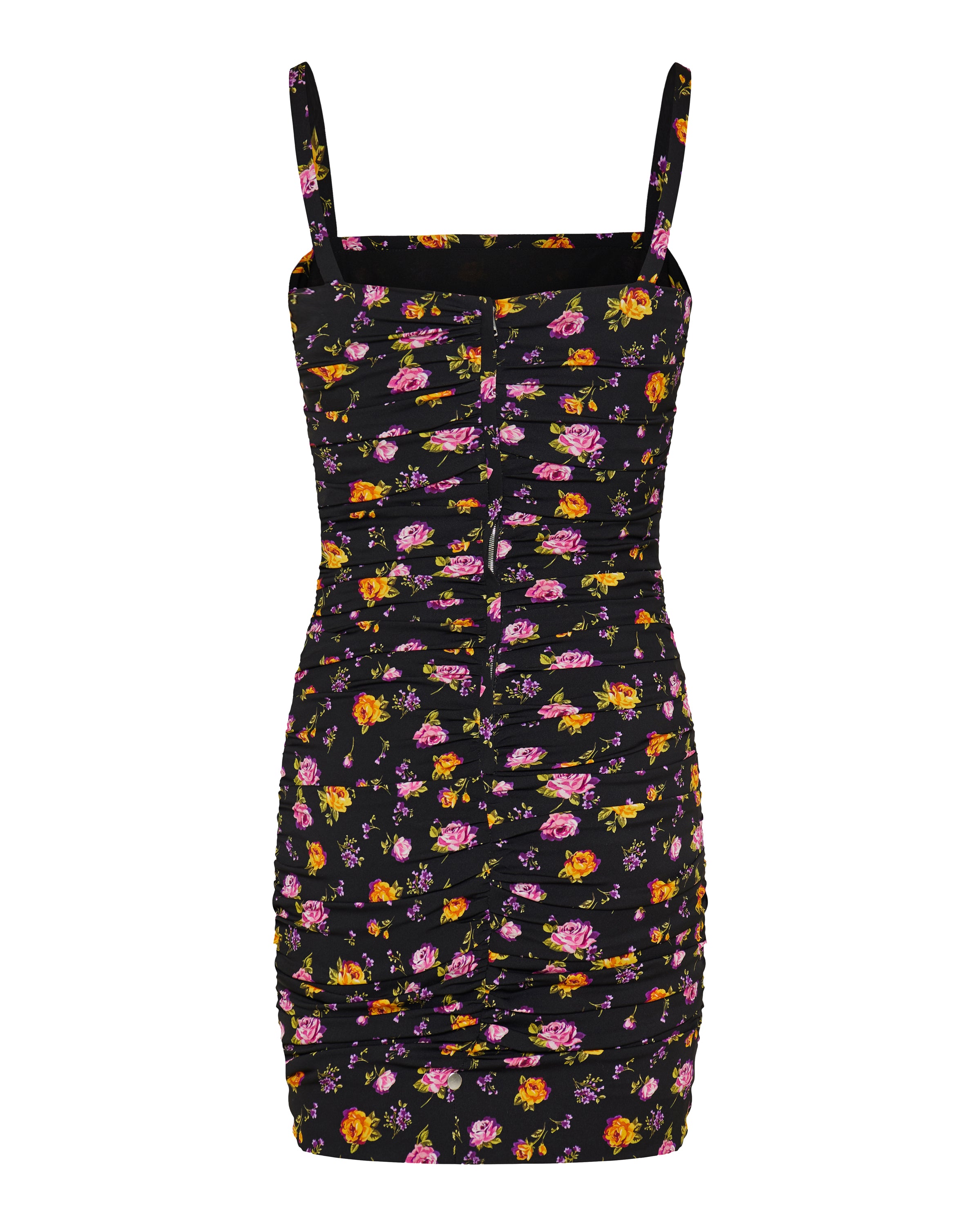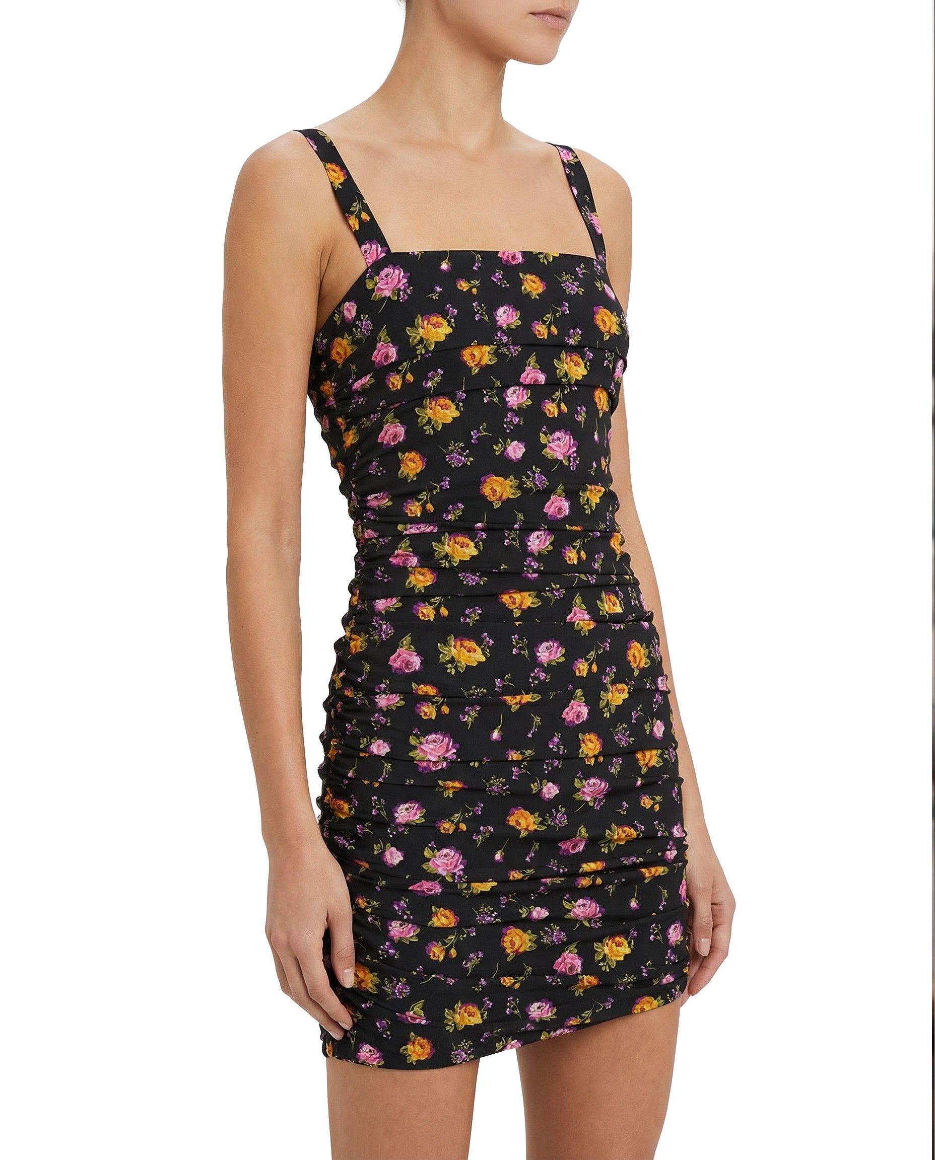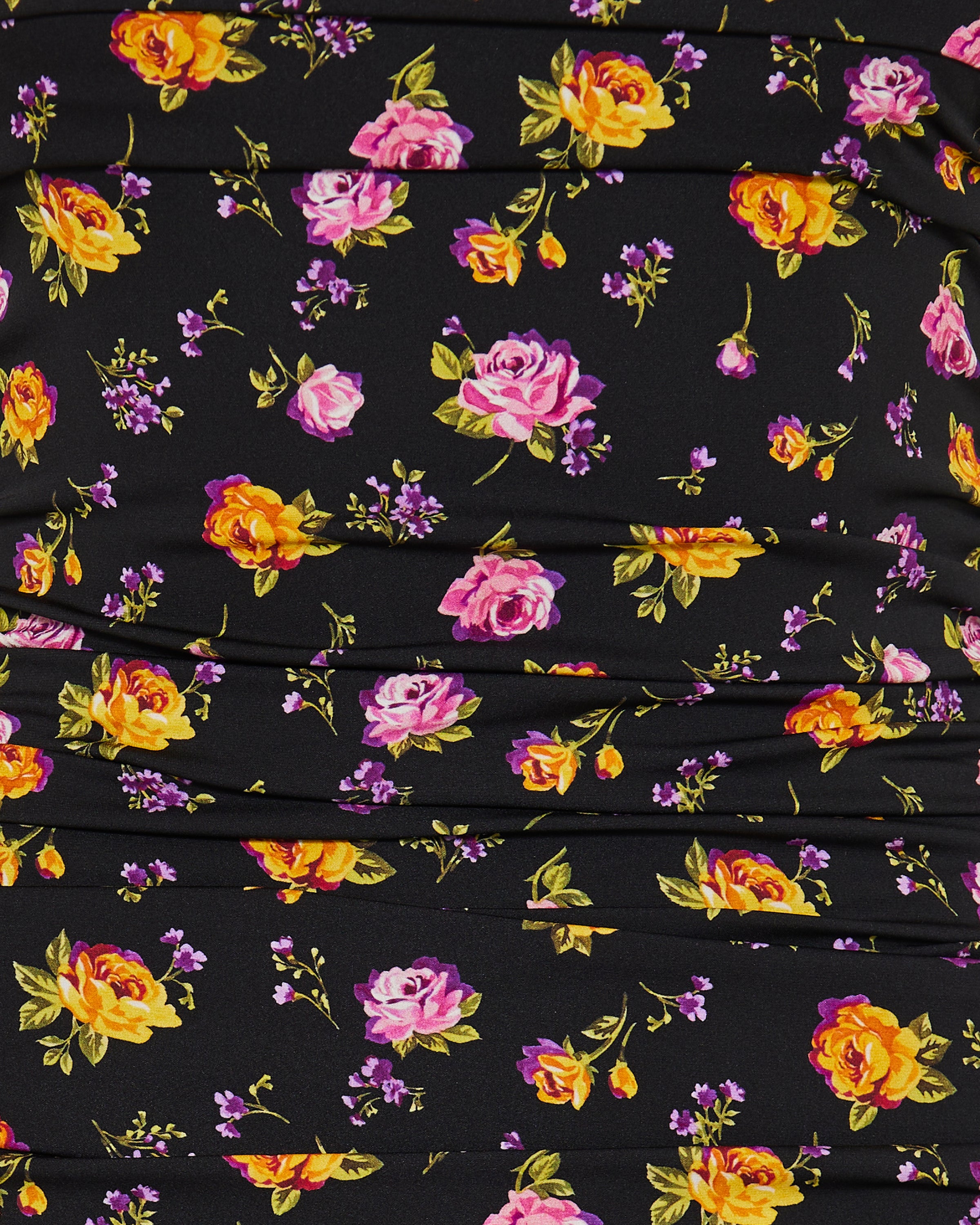 A luxurious silk charmeuse dress with an elegant floral print and draped detailing. Designed for elevated casual and refined daytime wear, it combines fluid tailoring with timeless femininity. Its versatile silhouette makes it perfect for chic day-to-evening ensembles.