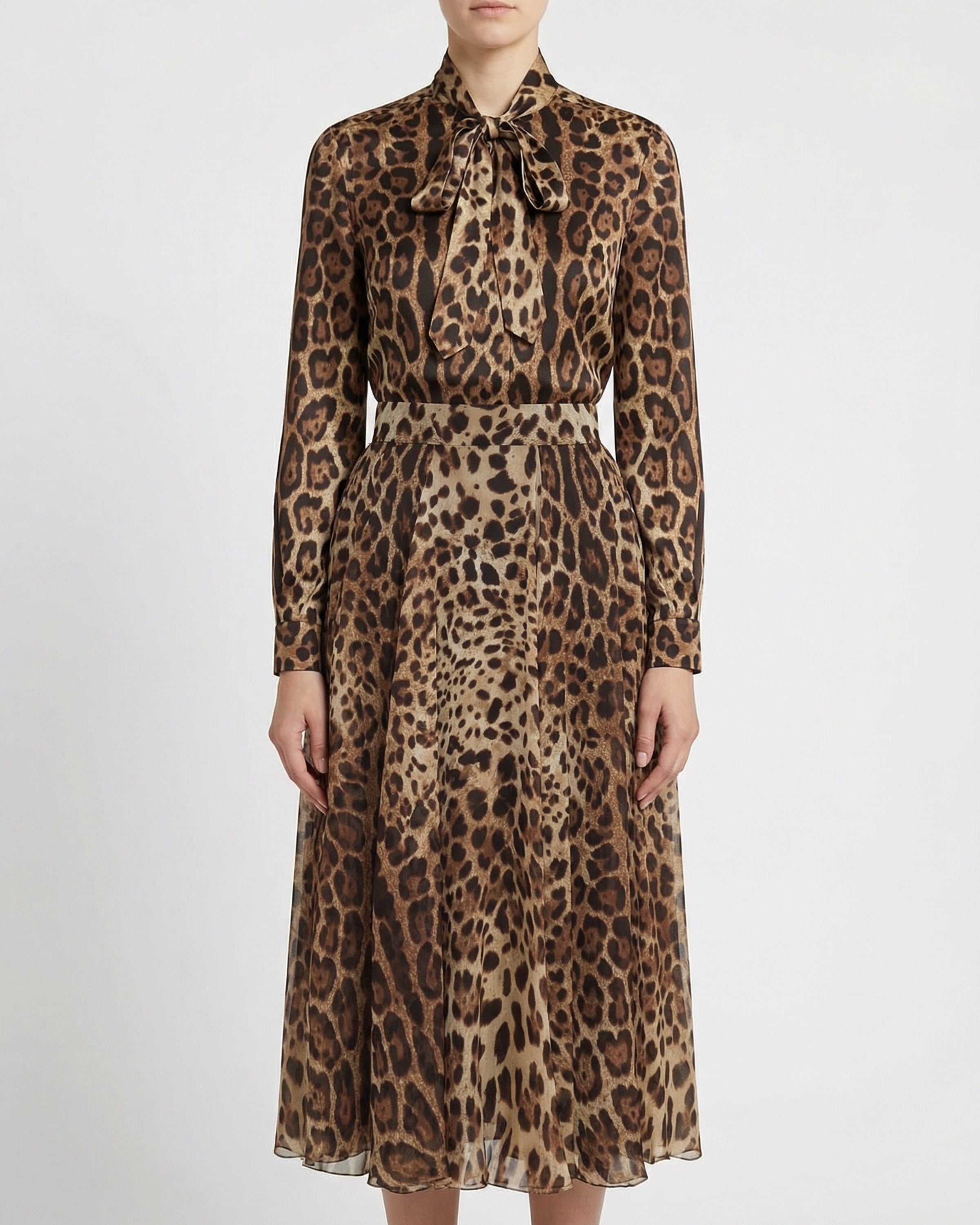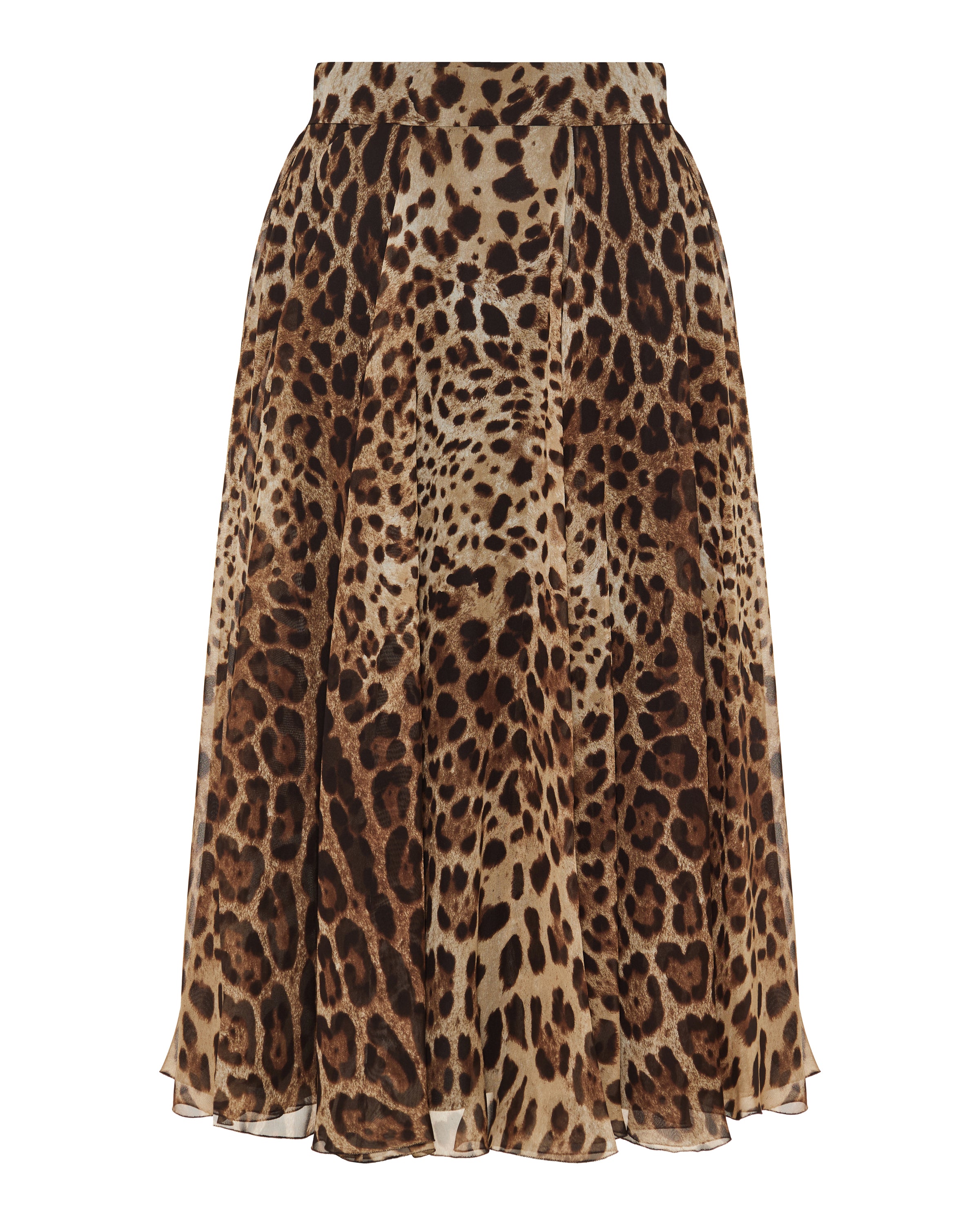 Expressive and fluid, this circle skirt reflects Dolce & Gabbana’s iconic approach to bold femininity. Designed with a high-waisted silhouette, it features a softly flowing chiffon construction enhanced by a distinctive leopard print that adds movement and visual depth. Elegant yet statement-driven, it is suitable for daytime occasions, elevated city styling, and refined evening wear with a confident, contemporary character.