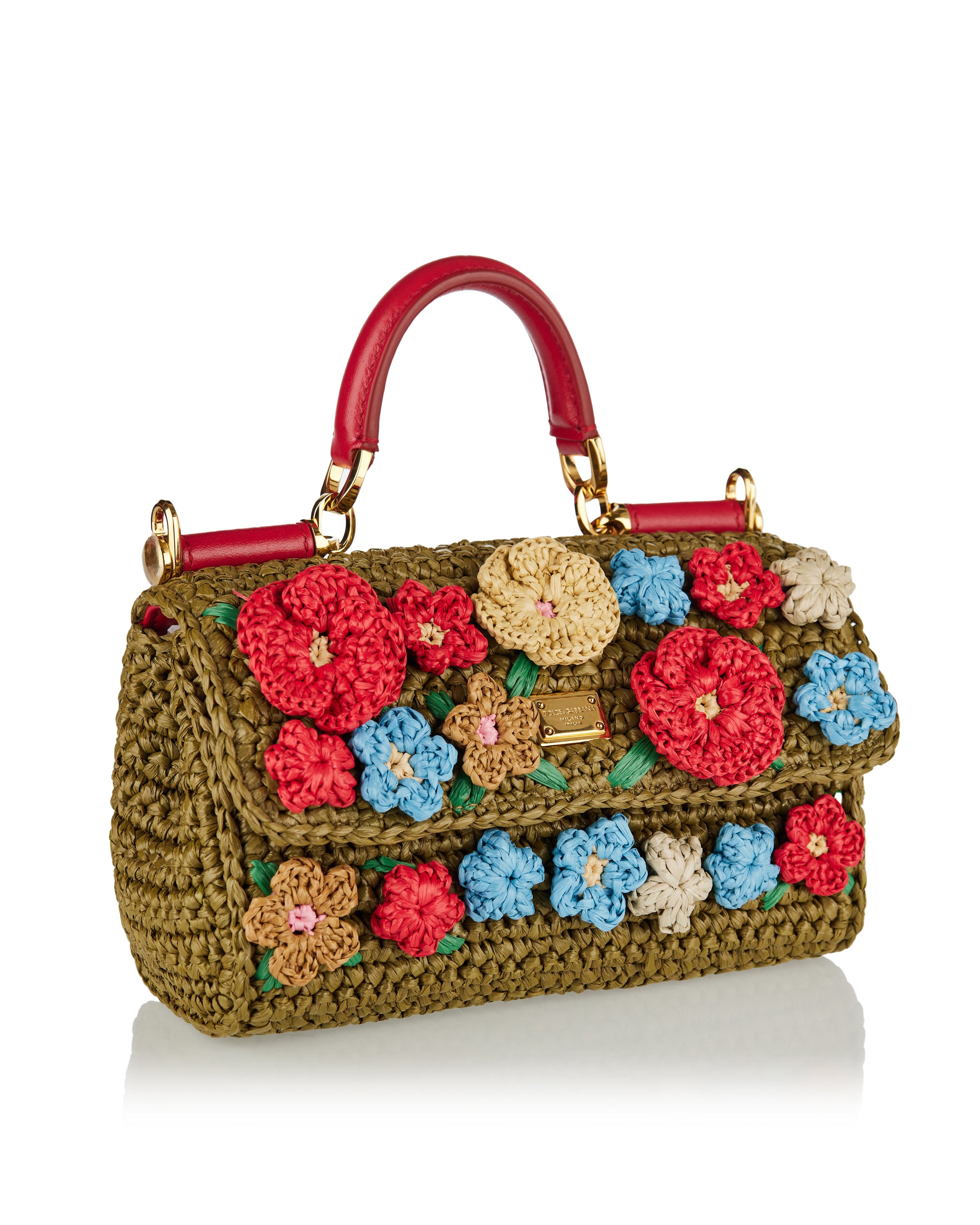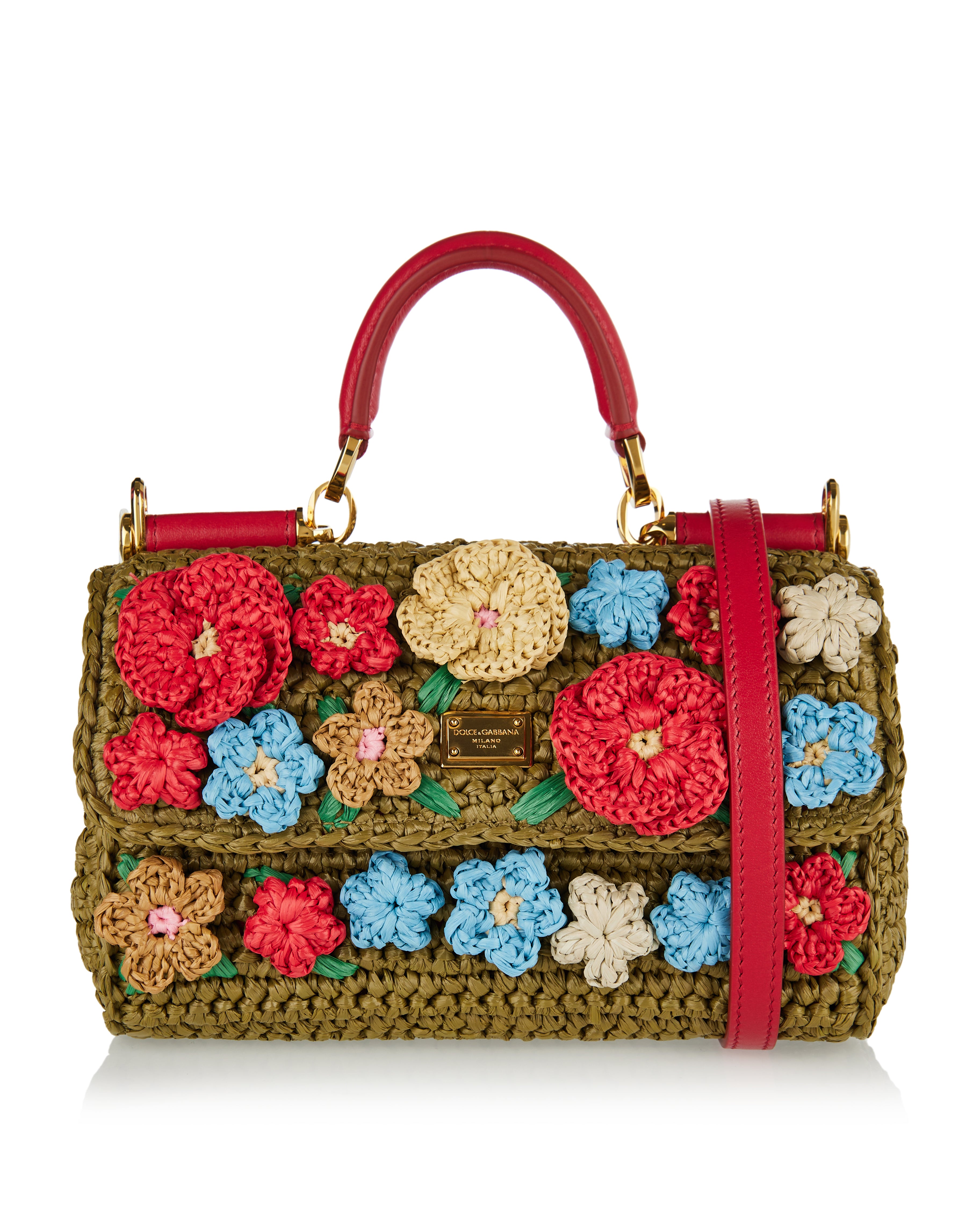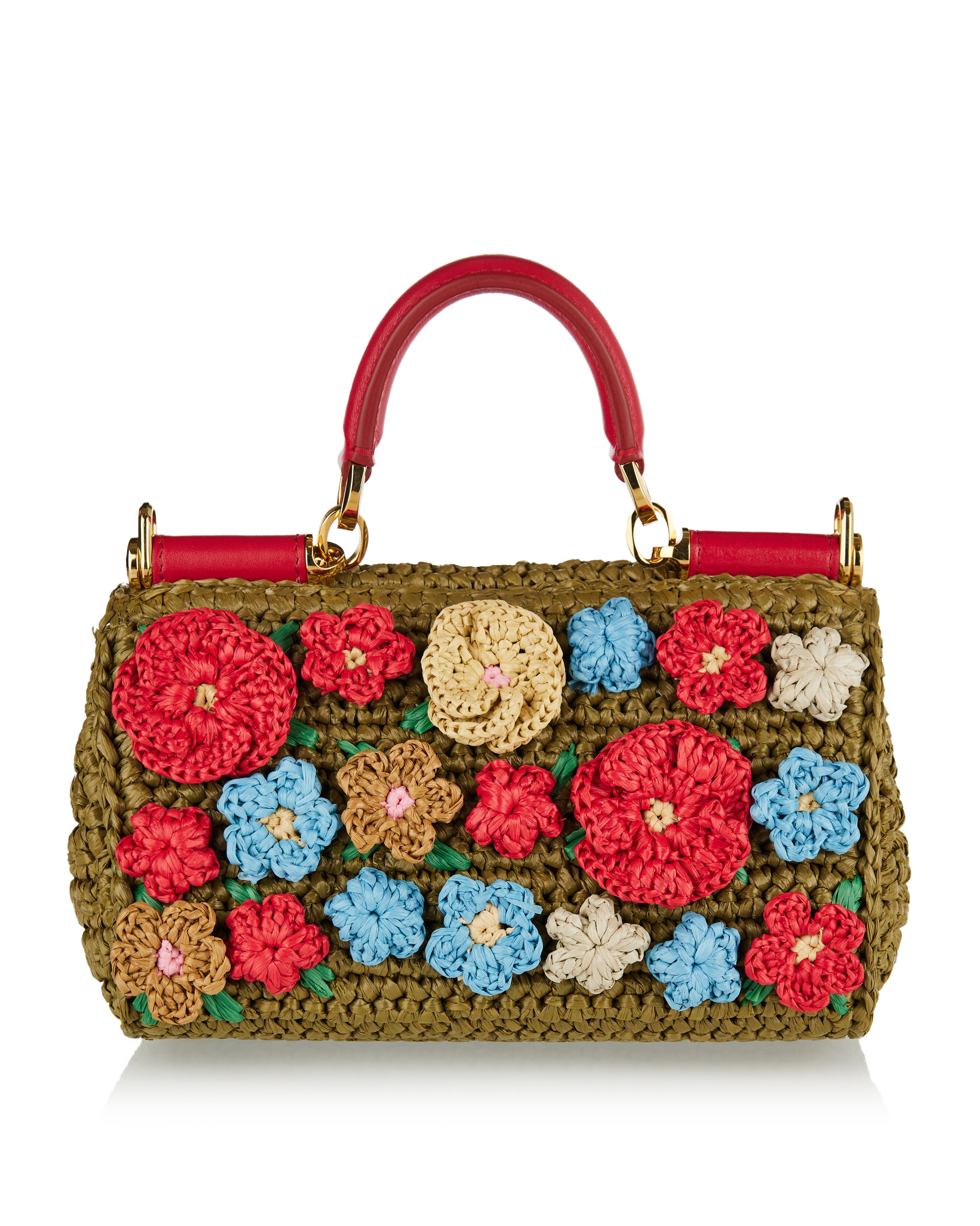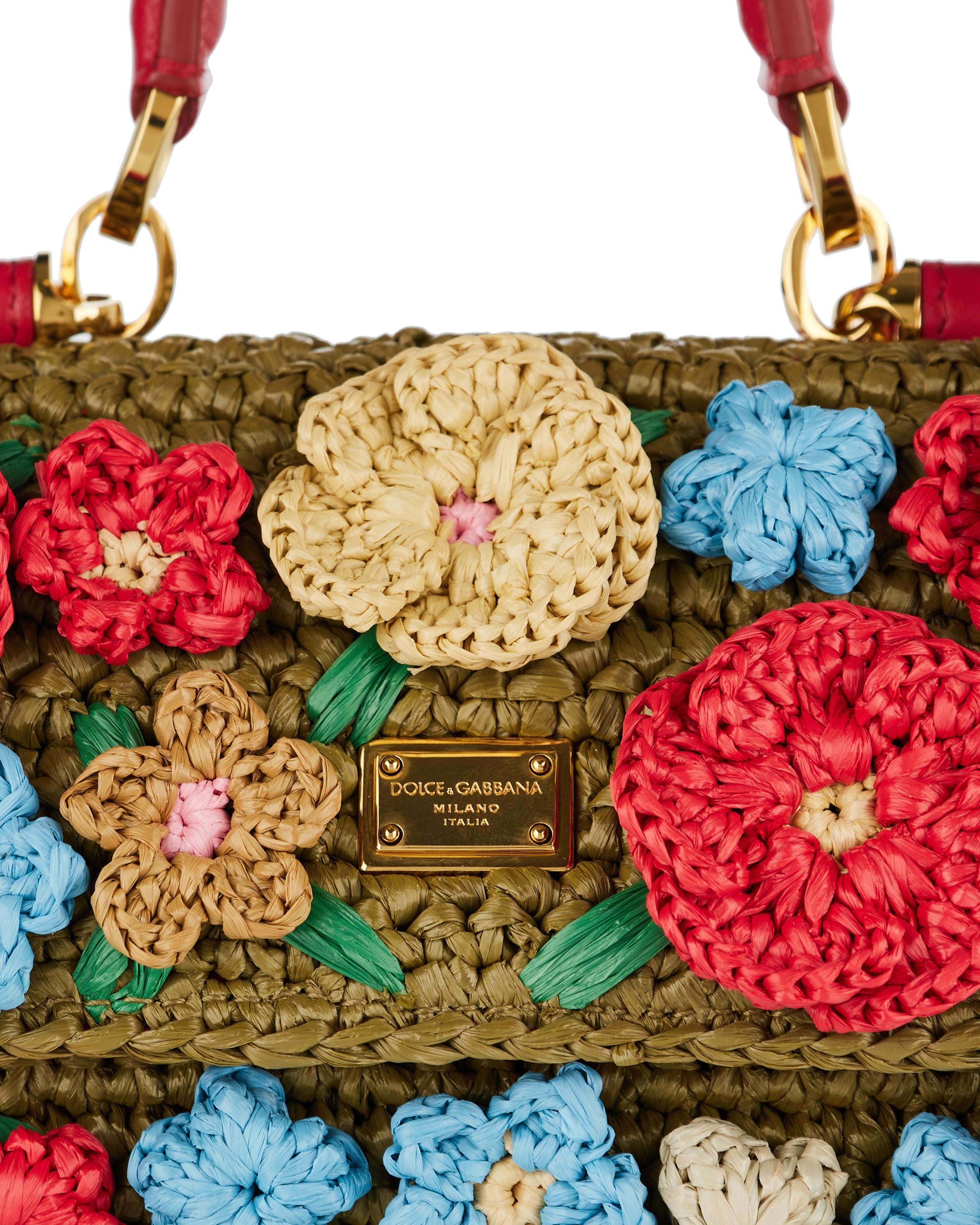 Made from intricately woven multicolor raffia