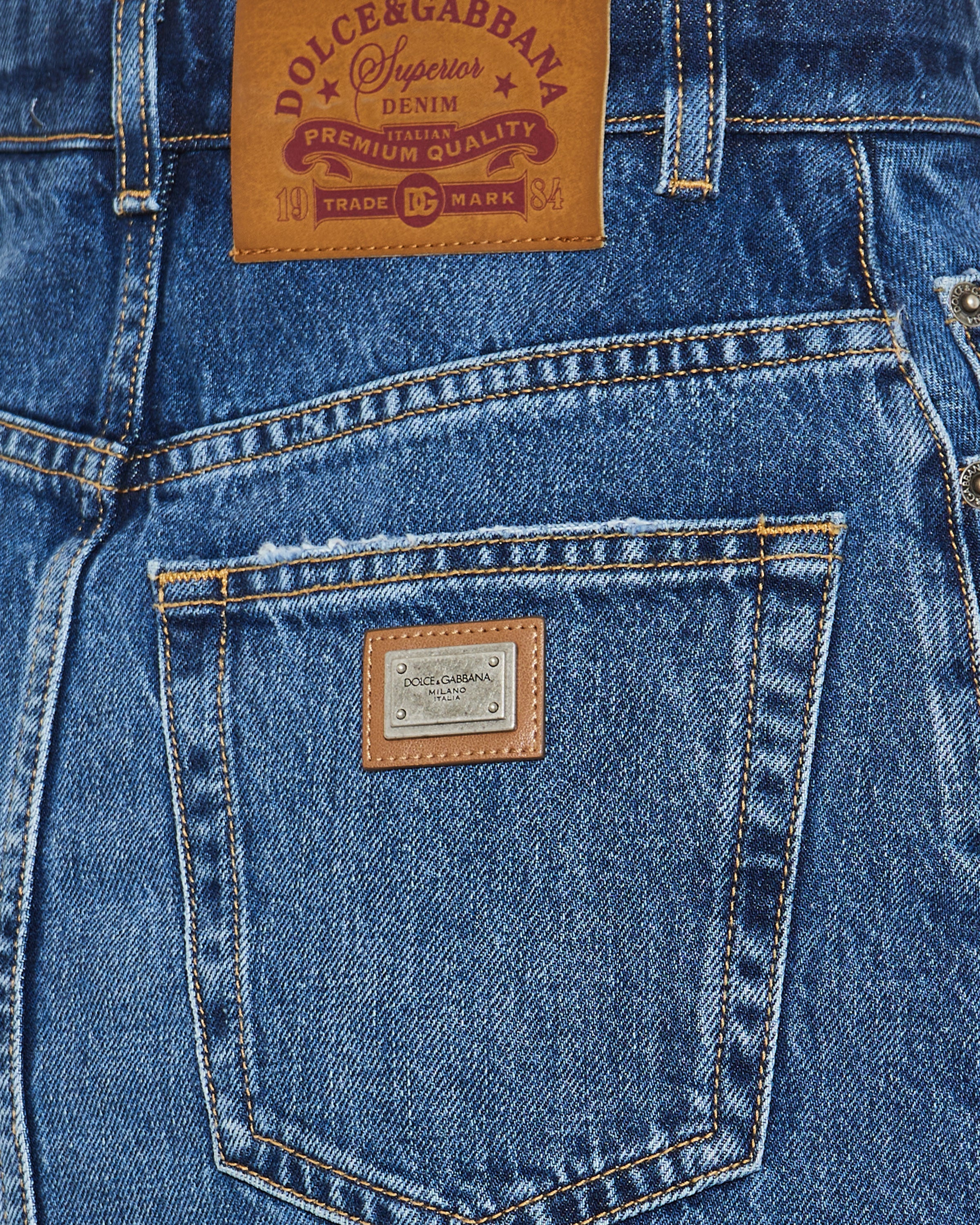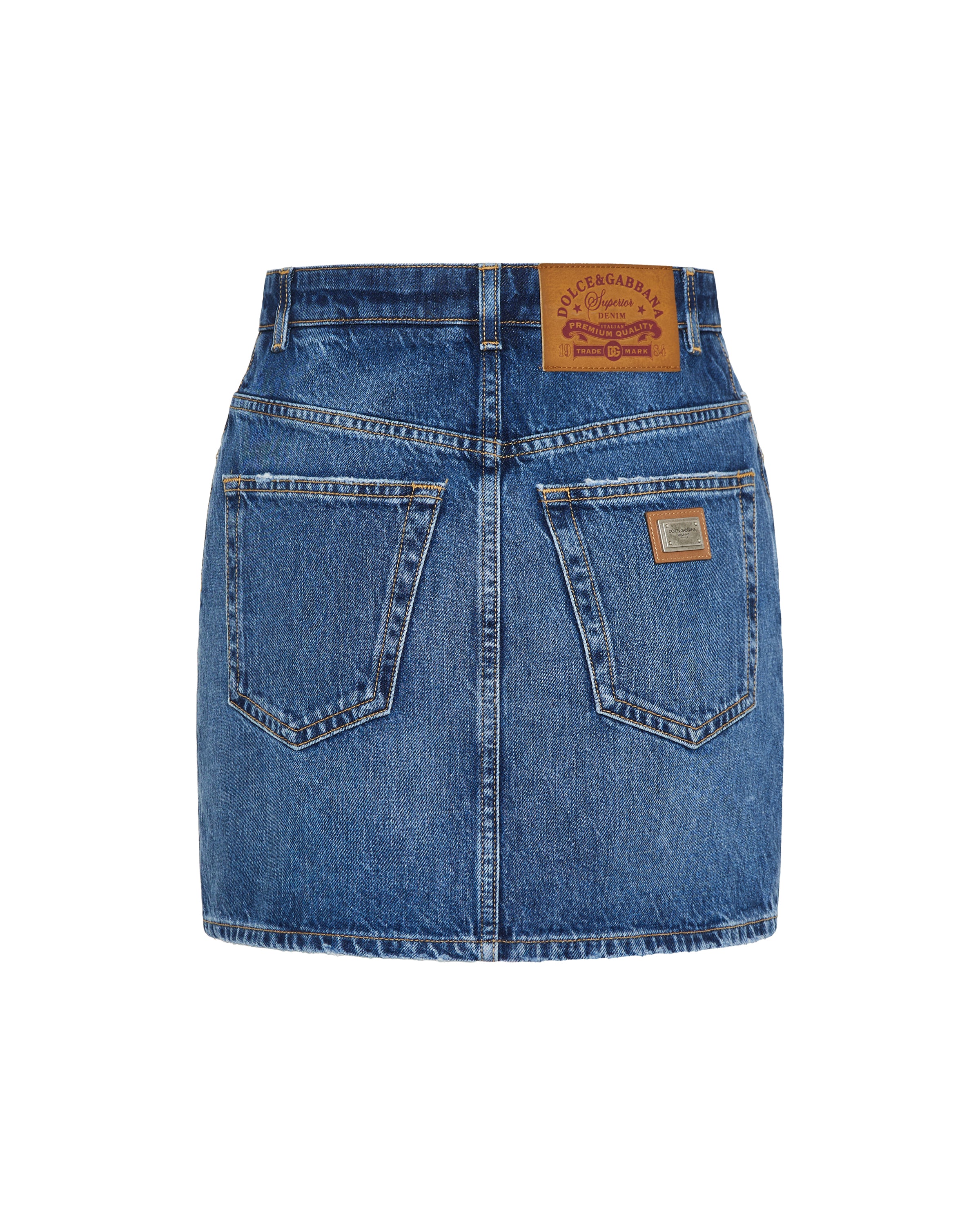 A playful yet sophisticated skirt that combines Dolce & Gabbana’s vibrant design aesthetic with classic denim tailoring.