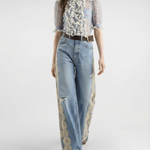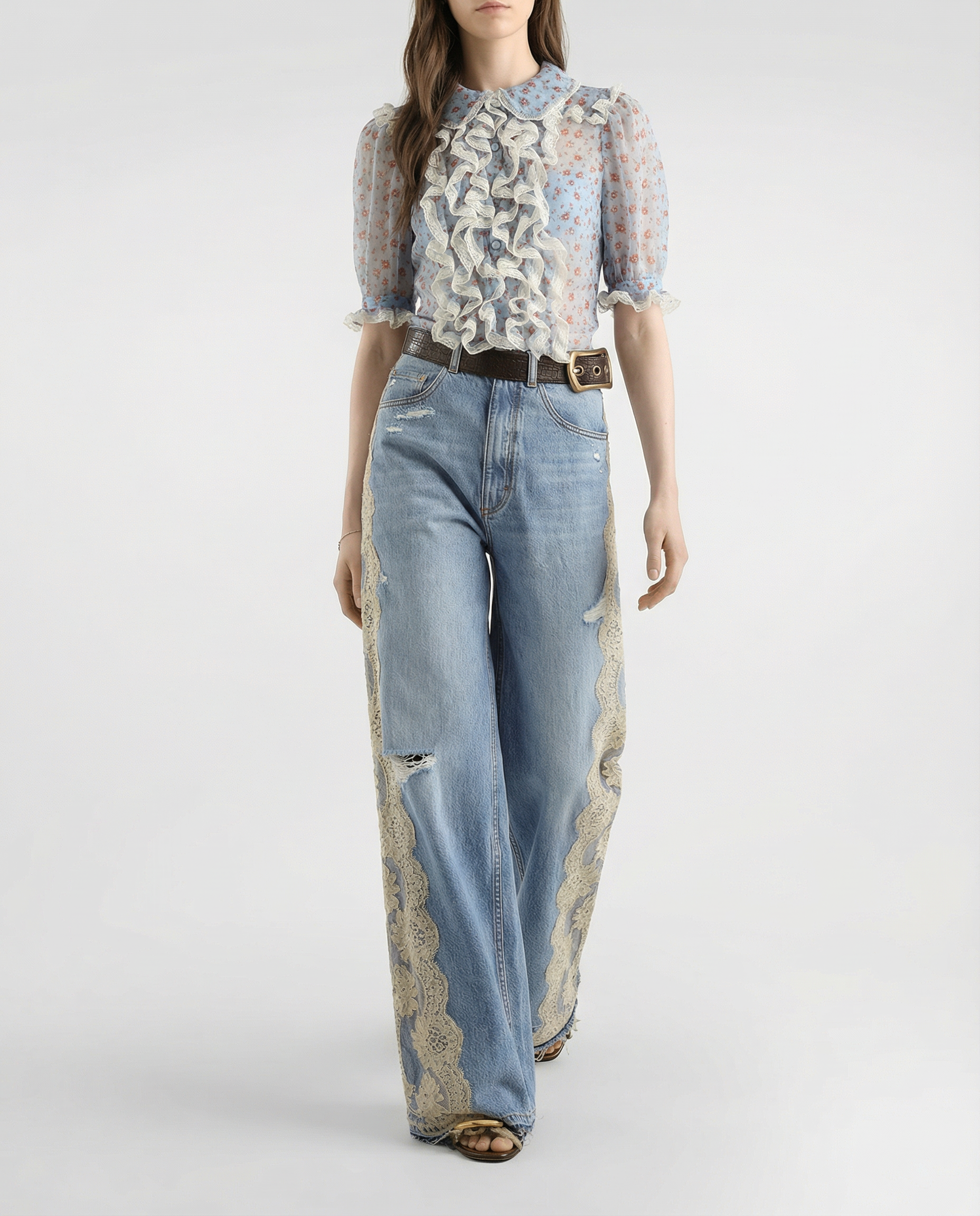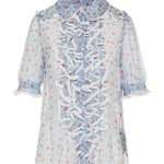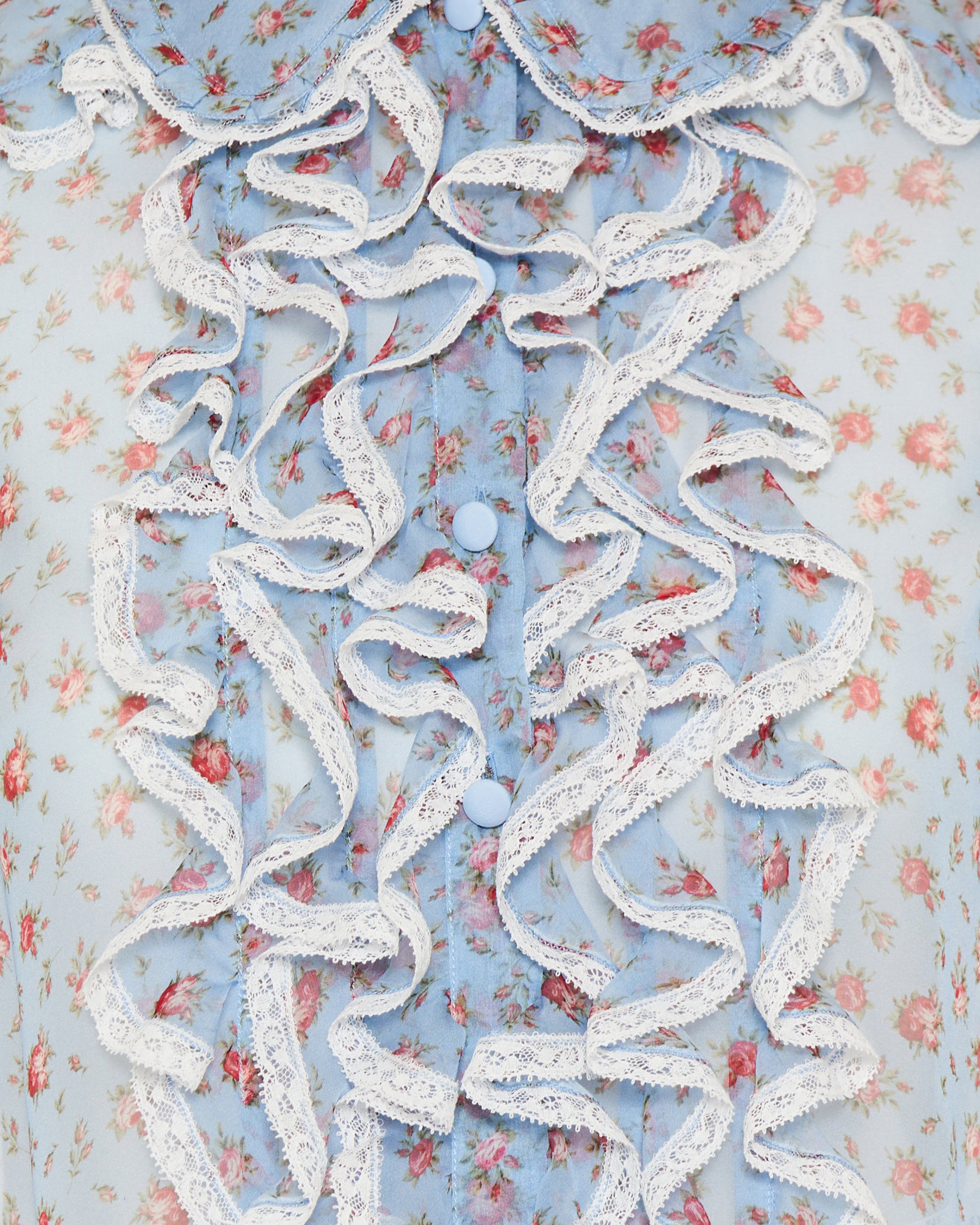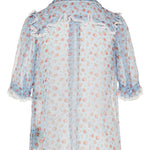 A fluid chiffon shirt defined by a delicate floral motif and a softly structured silhouette that moves with effortless lightness.