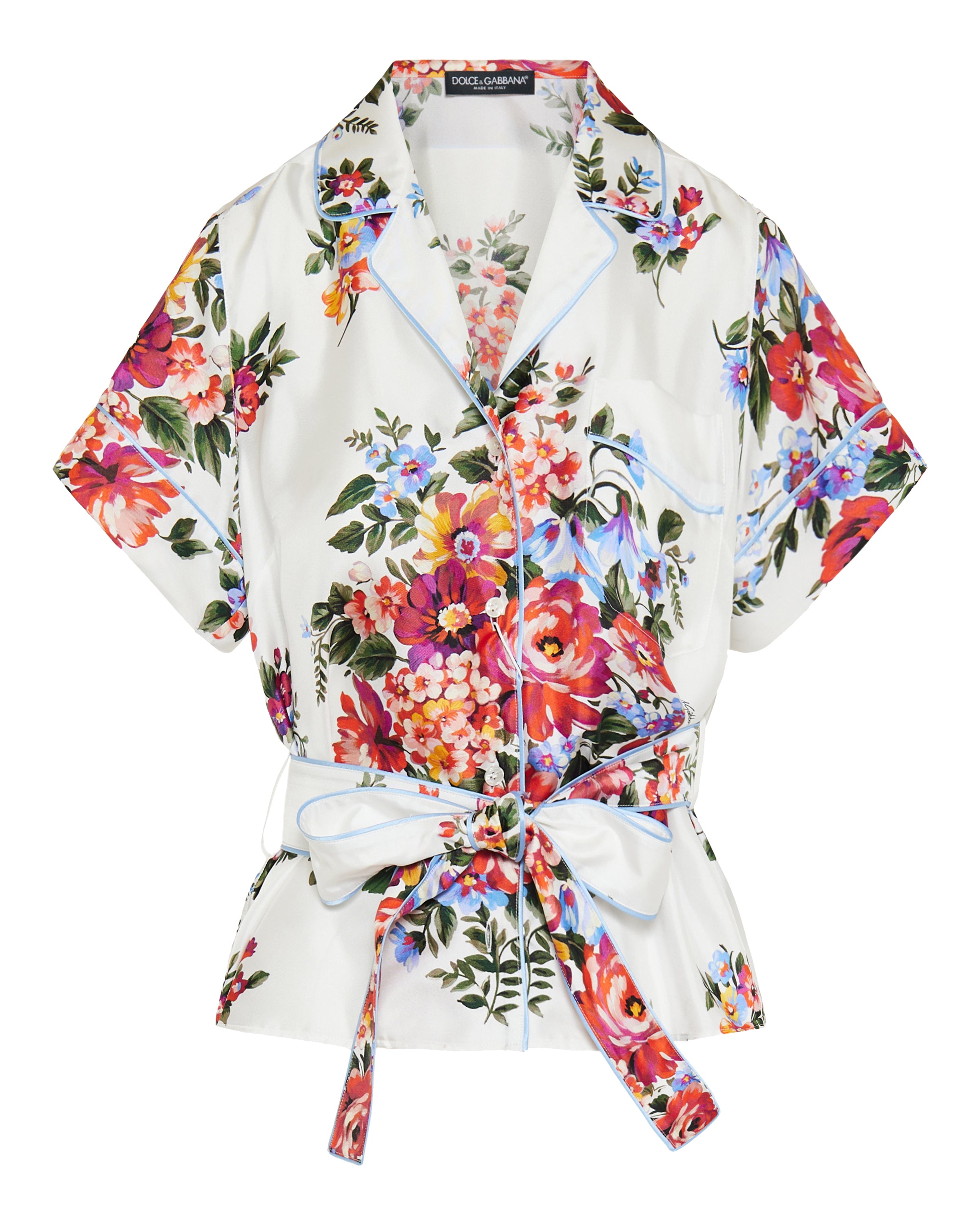 A vibrant and elegant shirt that combines Dolce & Gabbana’s signature floral motifs with luxurious fabric and tailored detailing.