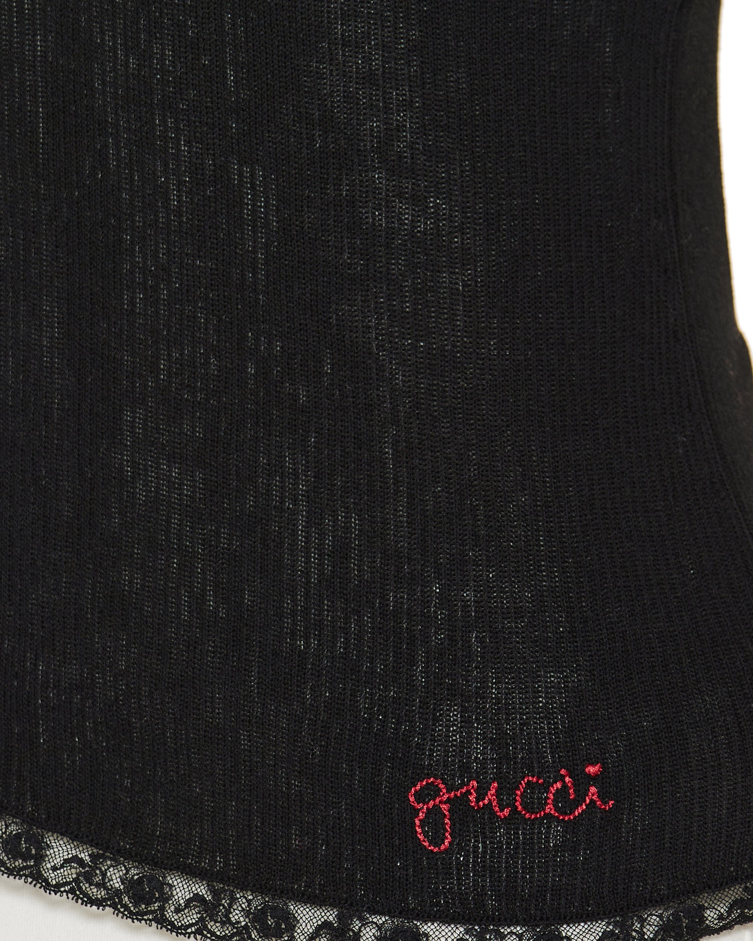 A sophisticated Gucci cotton rib cardigan from the Cruise 2026 women’s ready‑to‑wear collection, crafted in extra‑fine breathable cotton with delicate lace trim and signature Gucci logo embroidery above the hem. Designed for refined smart‑casual layering and elevated wardrobe versatility.