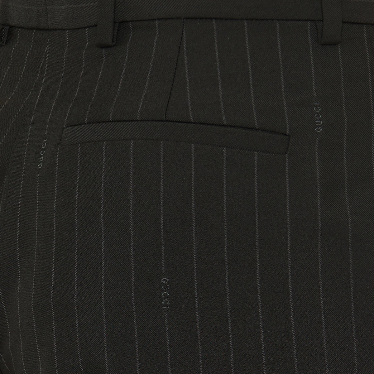 Elevate your wardrobe with the Gucci Pinstripe wool jacquard trousers. Crafted from premium wool jacquard, these tailored trousers feature a classic pinstripe pattern, offering a sophisticated and timeless look. Perfect for both professional settings and evening events.