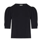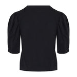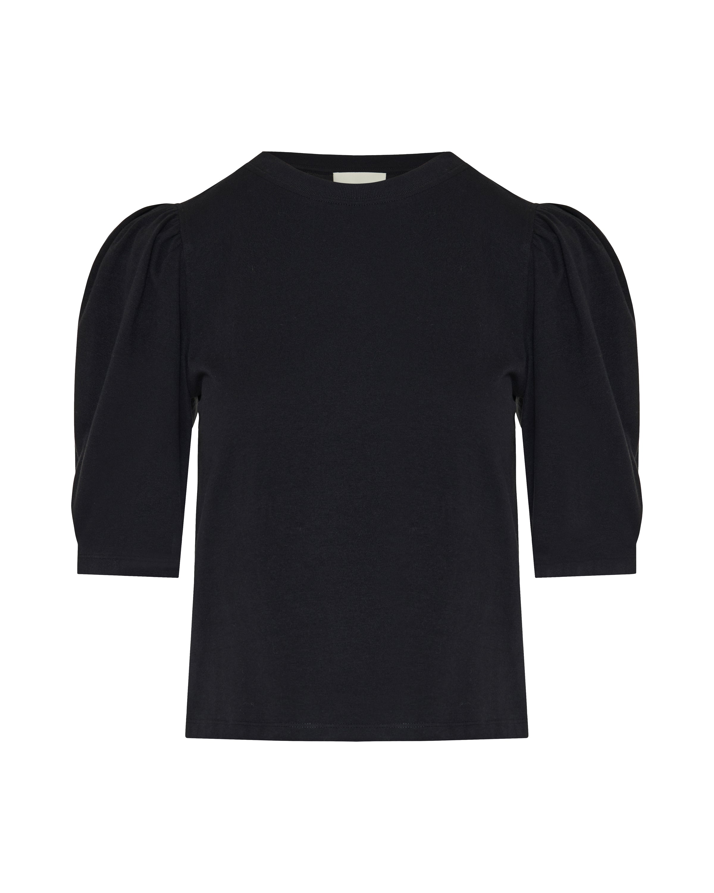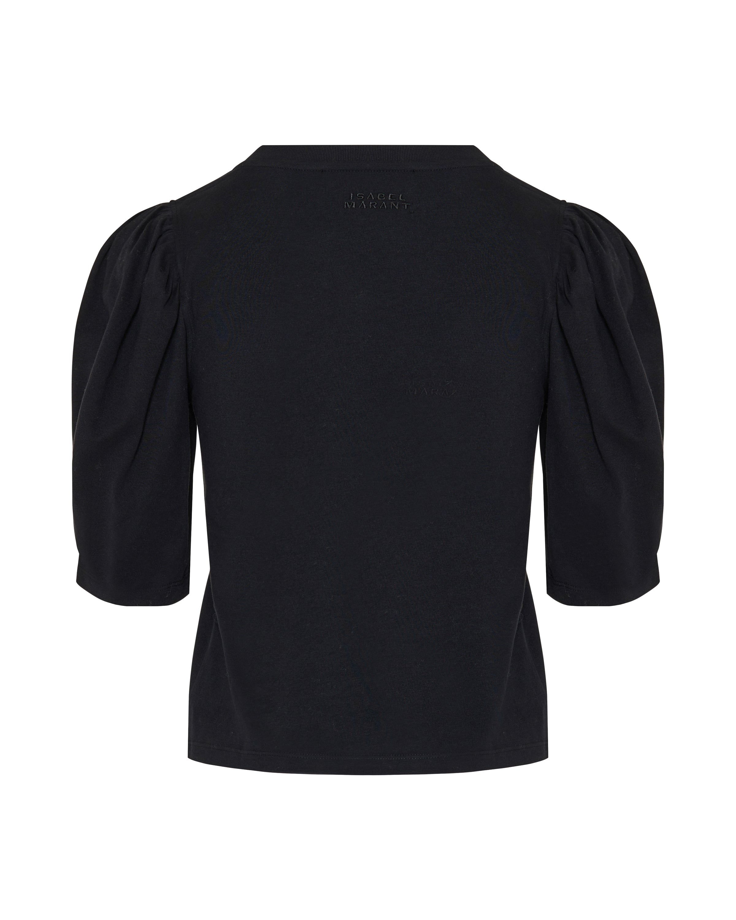 A black T-shirt crafted from soft cotton with a relaxed, slightly oversized fit. Designed for elevated casual wear, it combines minimalist tailoring with effortless sophistication. Its versatile silhouette makes it ideal for chic day-to-evening ensembles.