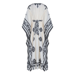 Johanna Ortiz’s Boating tunic dress is crafted in embroidered cotton with an elegant ecru and black palette. Designed with a relaxed slip-on silhouette, it reflects the brand’s effortless approach to warm-weather dressing. A versatile piece that transitions from daytime ease to refined evening elegance with artisanal flair.