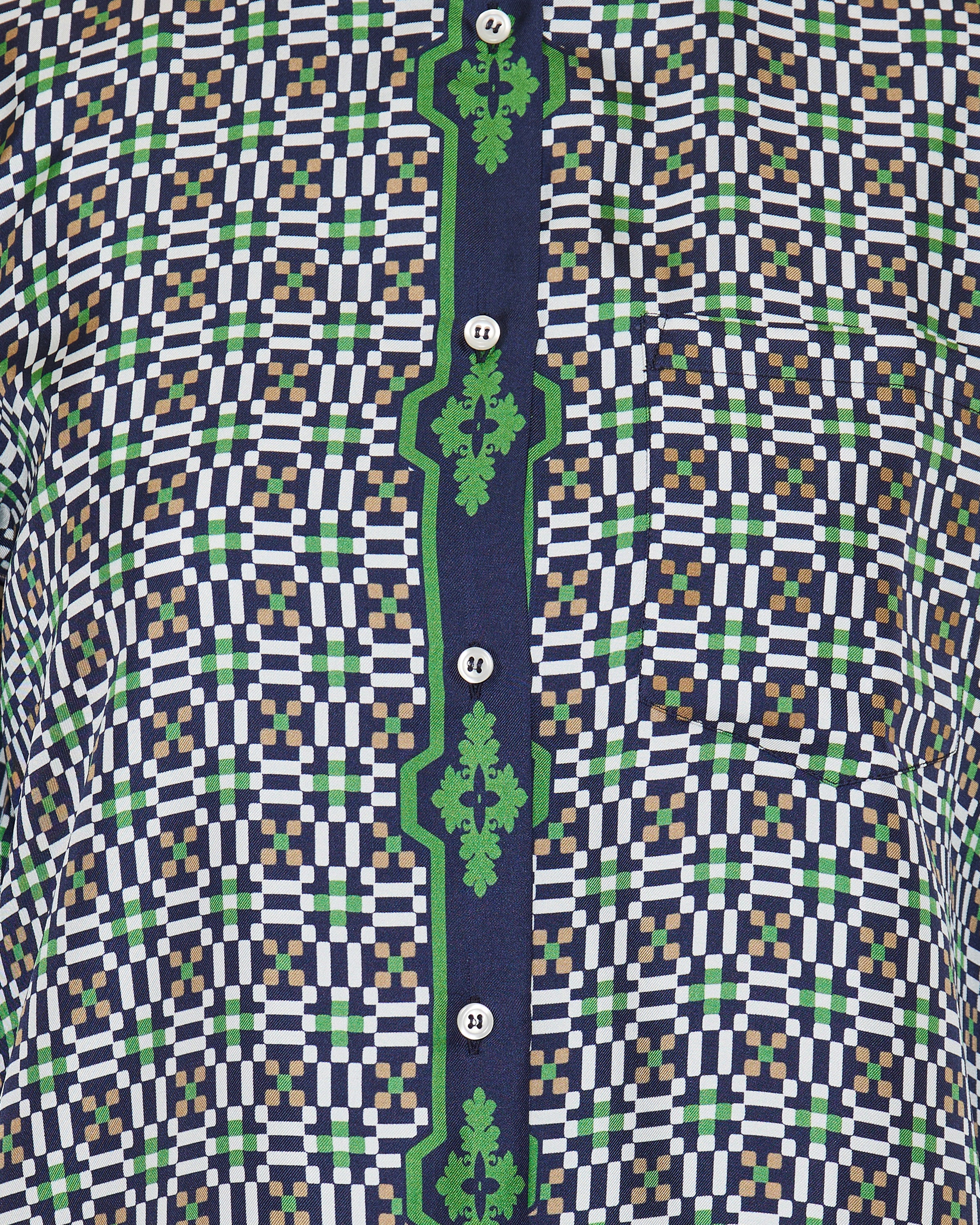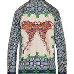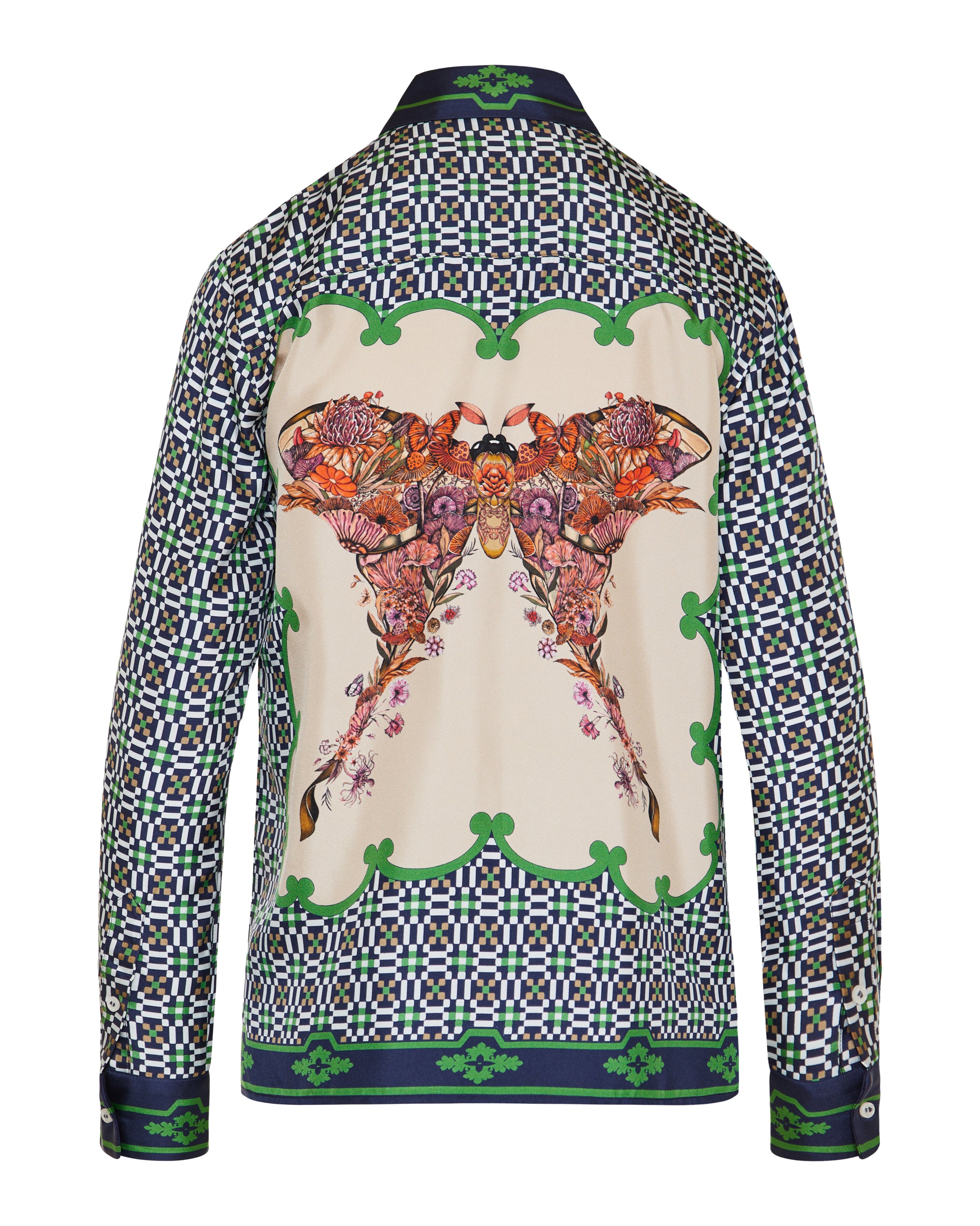A timeless silk twill button-down shirt in deep green, adorned with La DoubleJ’s signature Mariposa Placée print. Crafted for elevated casual and refined daytime wear, the straight, feminine silhouette features gathered long sleeves and a classic collar for effortless versatility. Made in Italy, this exquisite printed shirt brings subtle drama and Italian craftsmanship to contemporary wardrobes.