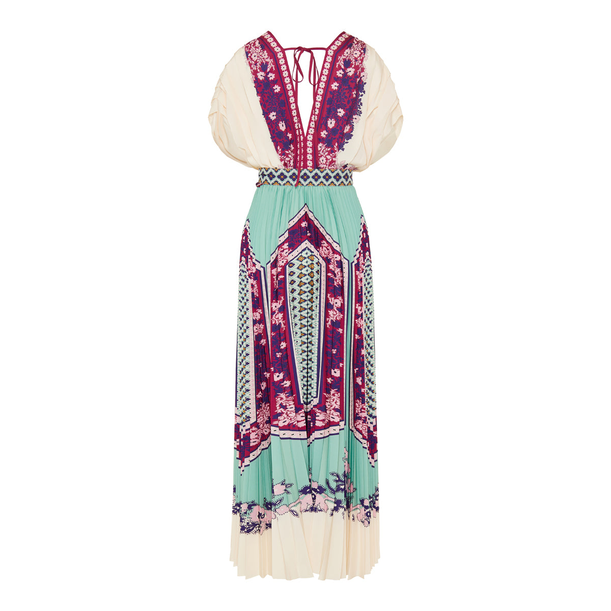 The La DoubleJ Accordion dress Cornucopia Placée features dramatic pleats and a fluid, flowing silhouette, enriched by the bold Cornucopia‑placed print on ecru techno crepe de chine. Its elegant drape and sophisticated tailoring make it ideal for evening affairs or refined daytime events — a statement of effortless luxury and graceful movement.