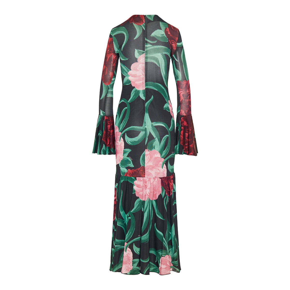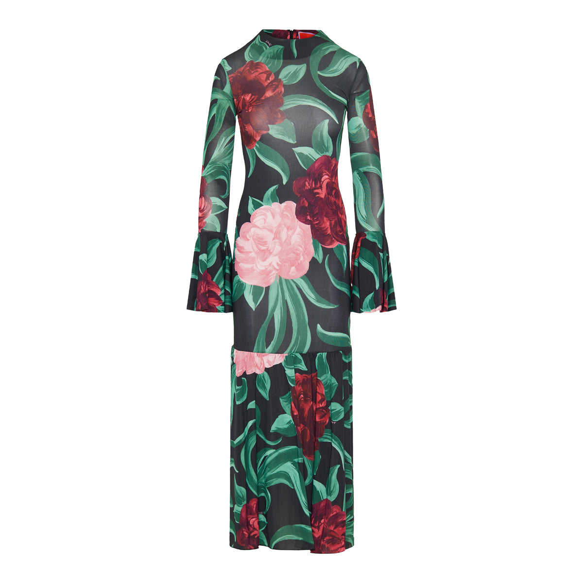 The La DoubleJ Alba dress Peony Black is crafted from a supple stretch jersey that gently embraces the silhouette, accentuating curves while offering comfort. Its crew neck, long sleeves, and flared cuffs paired with a skirt that flares from the knee create a graceful hourglass movement — ideal for elegant daytime events or refined evening occasions.