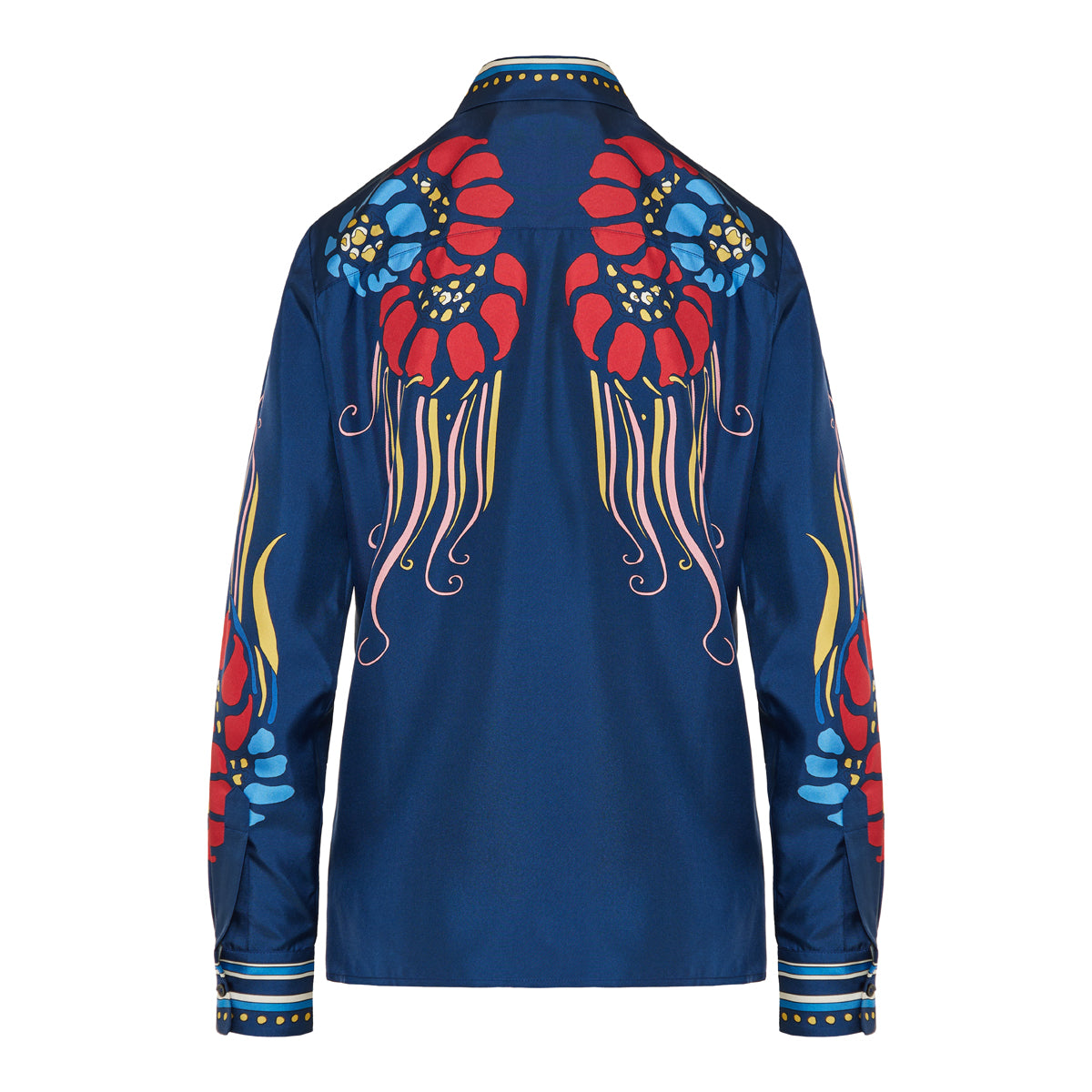 The Boy floral silk shirt by La DoubleJ pairs classic tailoring with the House’s signature vibrant floral print, offering a relaxed, fluid drape in a straight‑cut silhouette. Cut from pure silk twill, it brings refined elegance to daytime styling or elevated evening looks — ideal when paired with trousers or a skirt for effortless yet polished sophistication.