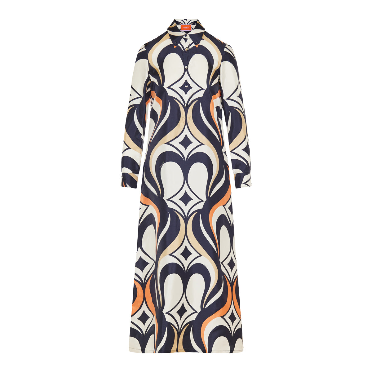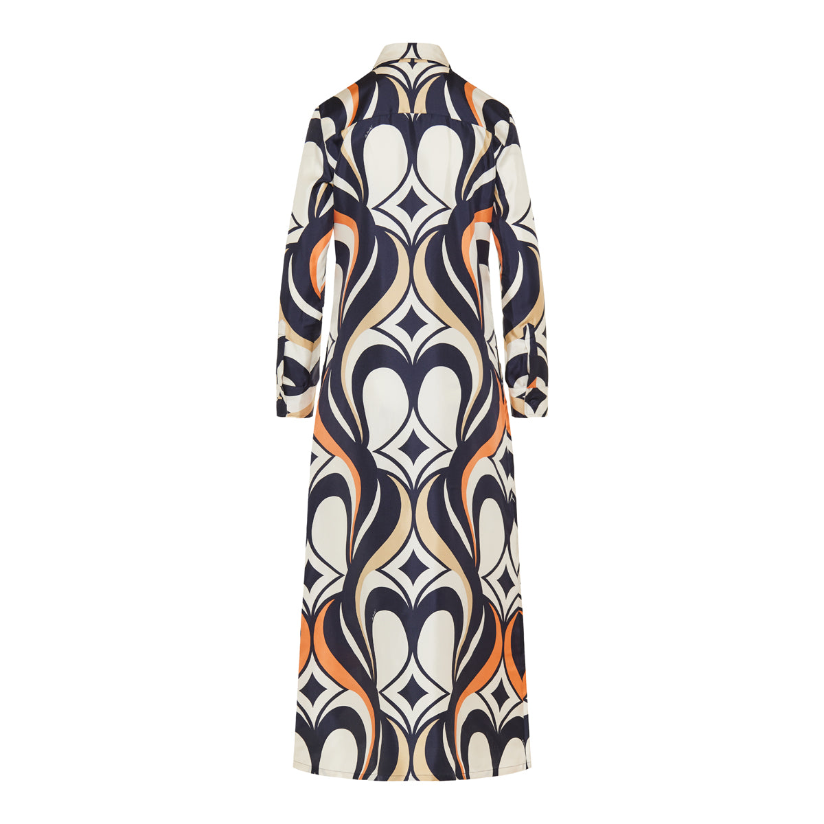 A fluid chemise dress cut with a relaxed swing silhouette, offering ease of movement and a refined, lightweight drape.