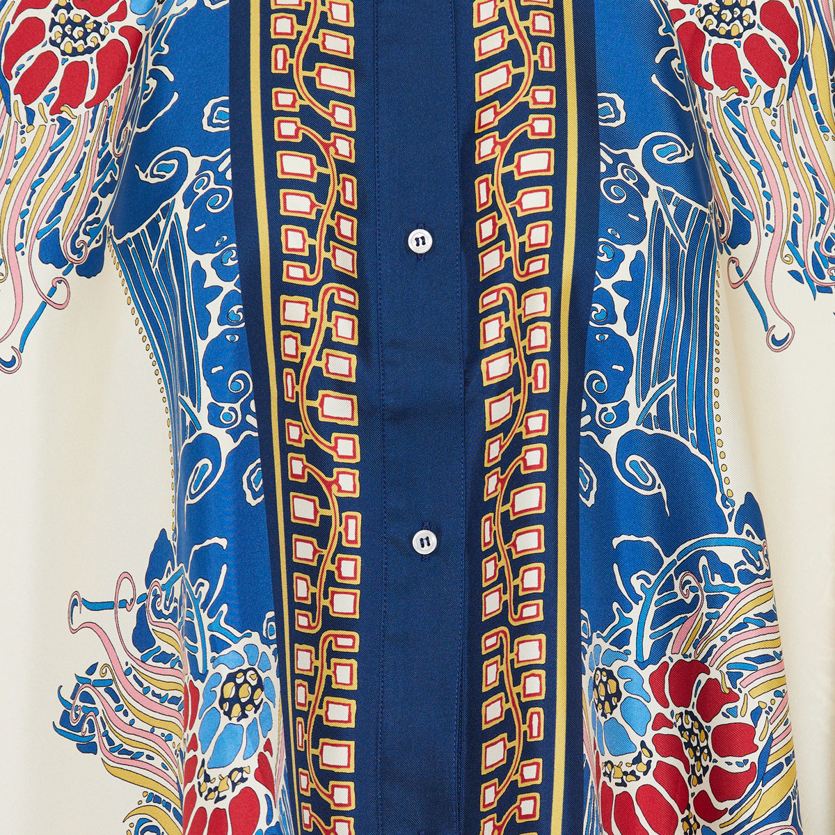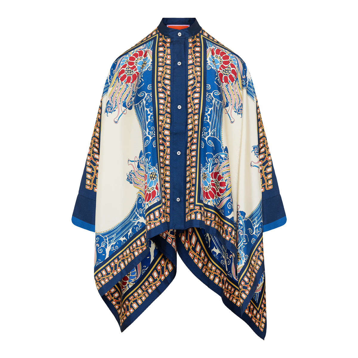 The La DoubleJ Foulard printed silk twill shirt showcases a relaxed, flowing cut and asymmetric silhouette, crafted from 100% silk twill for a fluid drape. Its vibrant multicolor print and button-down front blend bold personality with refined elegance — ideal for stylish daytime ensembles or elevated evening looks when paired with tailored trousers or a statement skirt.