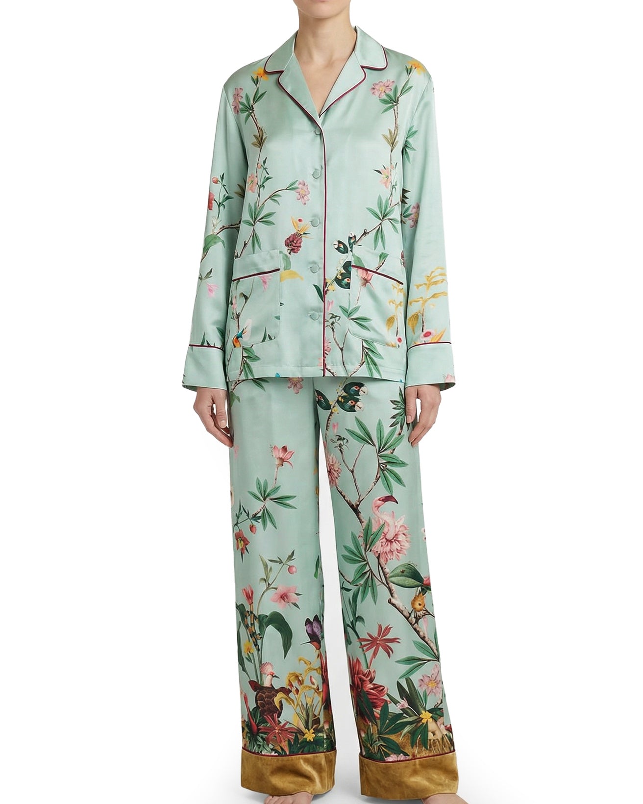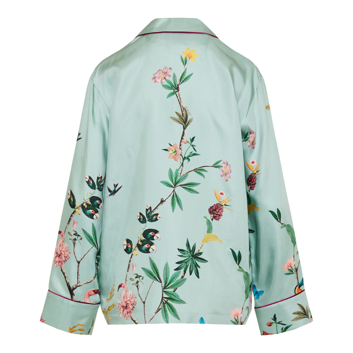 A relaxed silk‑twill pajama shirt by La DoubleJ, ideal for sophisticated casual or resort wear. Its oversized lapel, patch pockets and fluid cut deliver effortless elegance, while the signature Zooflora print lends a vibrant yet refined charm — perfect for laid‑back luxury styling or breezy daywear.