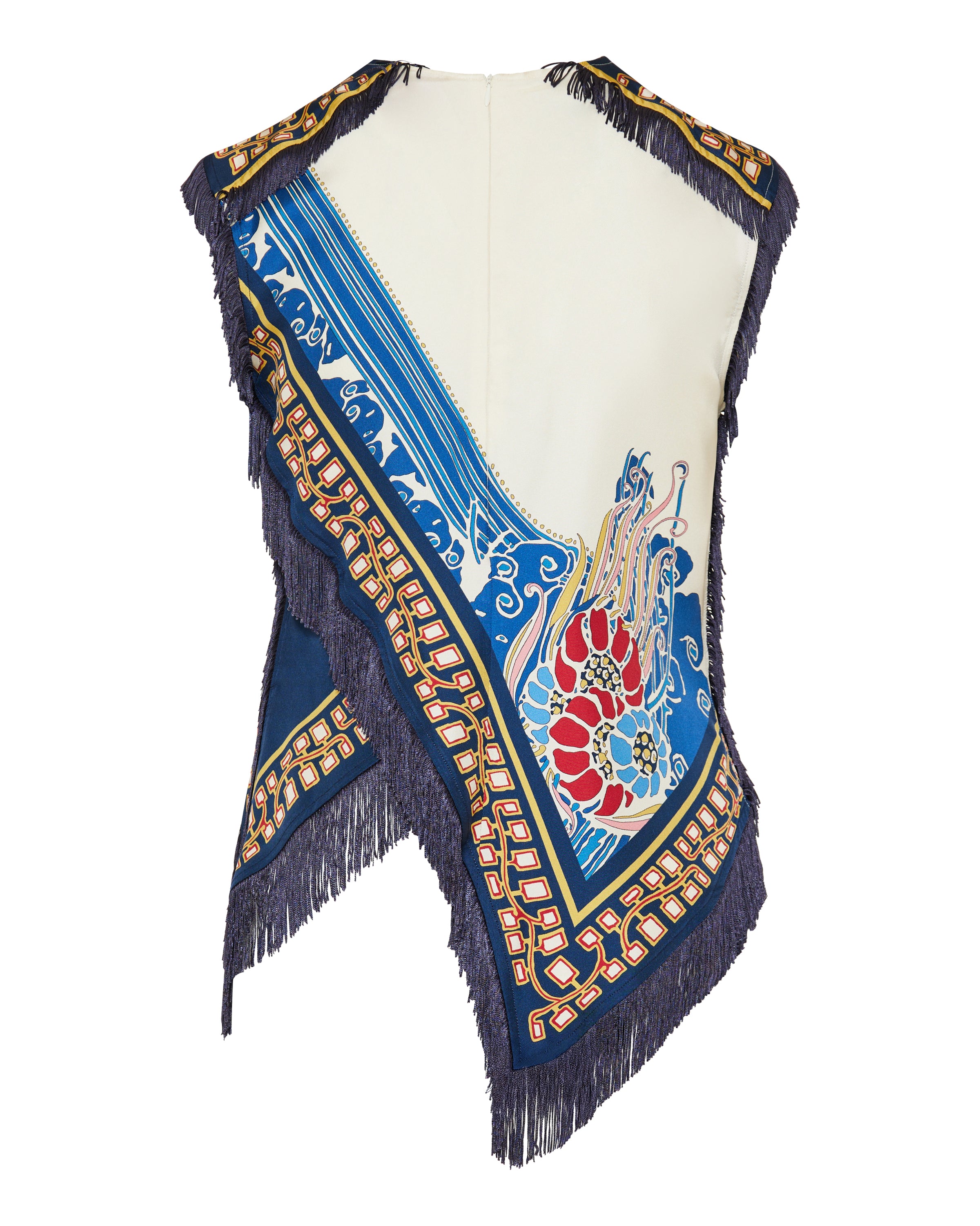 A striking scarf-inspired top crafted from luxurious silk with La DoubleJ’s signature Lemuria Placée print in vibrant blues. Designed for elevated casual and refined daytime wear, this piece blends fluid drape with contemporary elegance. Its versatile silhouette pairs beautifully with tailored trousers or skirts for a chic, modern ensemble.