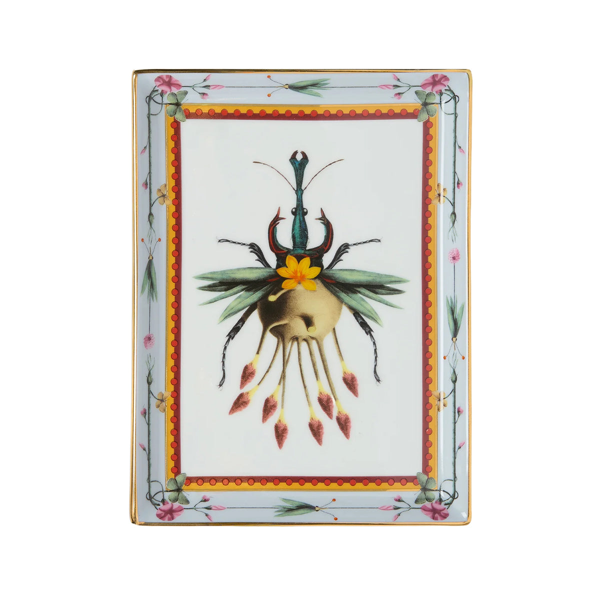 This La DoubleJ Leafbug trinket tray in light blue brings graceful flair to your interiors, ideal for holding jewellery, keys, or decorative accents. Crafted from fine porcelain and hand-painted with the signature Leafbug print, it features artisan detailing and a delicate 18K-gold rim for a touch of refined glamour.