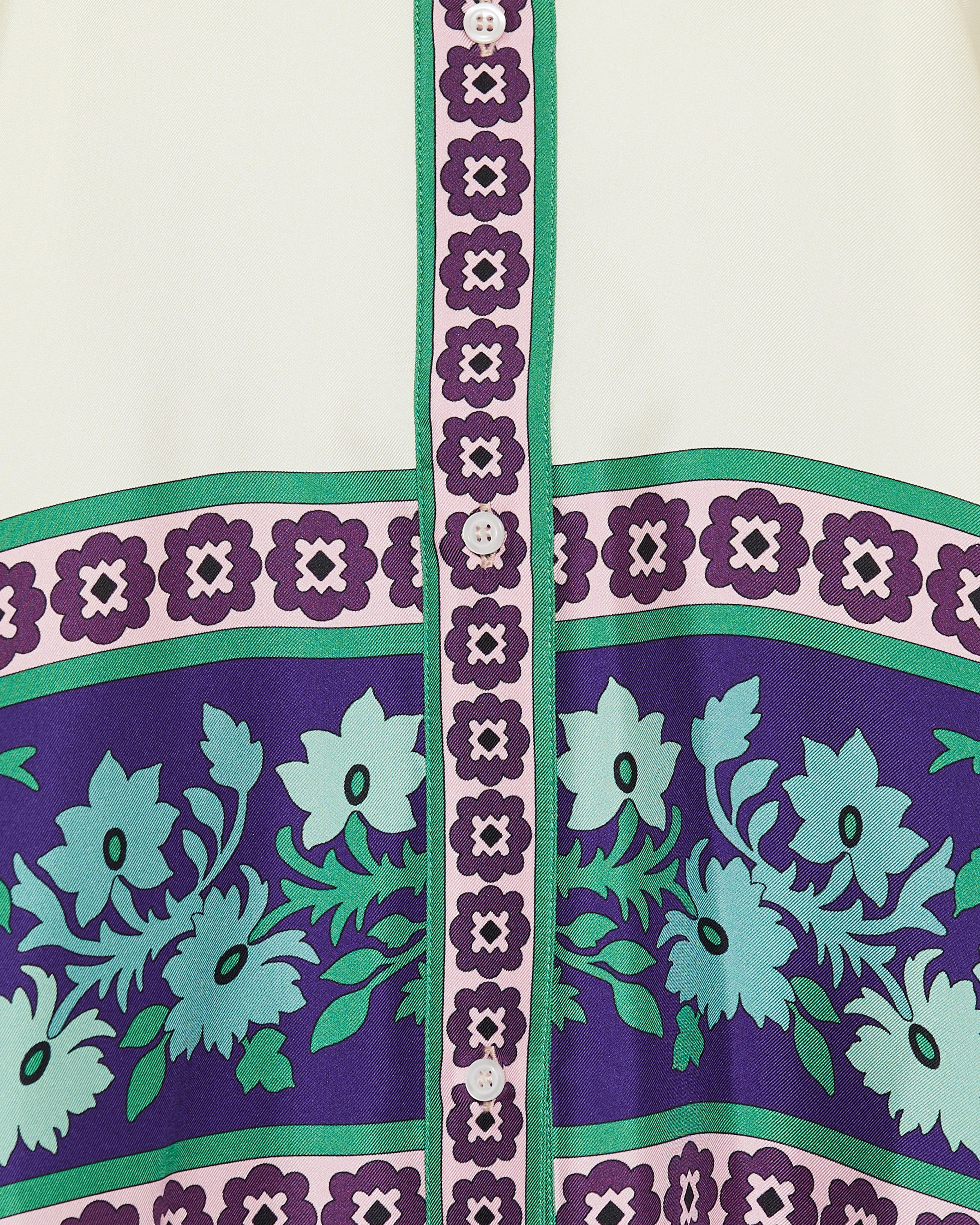 Fluid shirt defined by a vibrant placed print and a relaxed silhouette, designed to bring color and movement to elevated everyday looks.