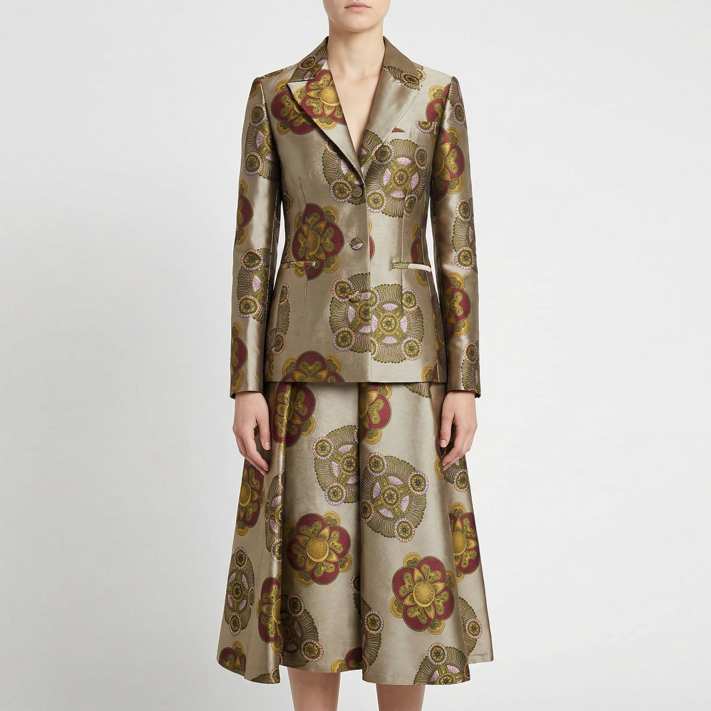 A striking jacquard midi skirt by La DoubleJ, ideal for sophisticated daywear or elegant evening ensembles. Its voluminous, flared silhouette and rich multicoloured print add dramatic movement and refined flair — perfect for statement‑making but tasteful outfits, from refined city dressing to stylish event looks.