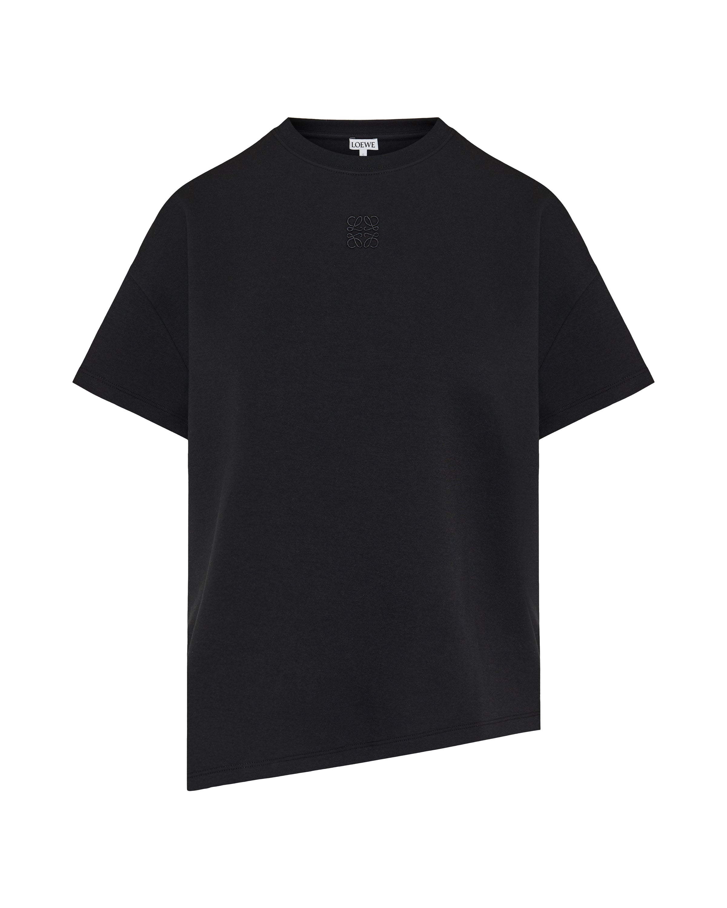 Refined jersey T-shirt in a soft cotton-blend with signature Loewe Anagram embroidery beneath the crew neckline and an asymmetric split hem for contemporary style. Designed with a relaxed silhouette and mid-weight stretch, this elevated essential suits refined casual and smart-casual wardrobes.