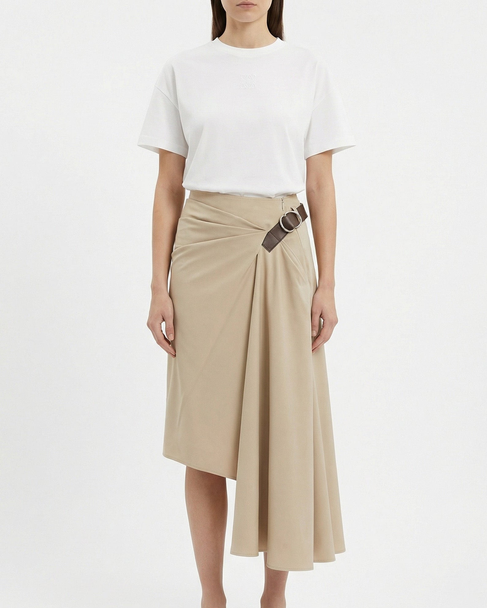 A refined and elegant skirt that blends natural fibers with Loewe’s contemporary tailoring for effortless sophistication.